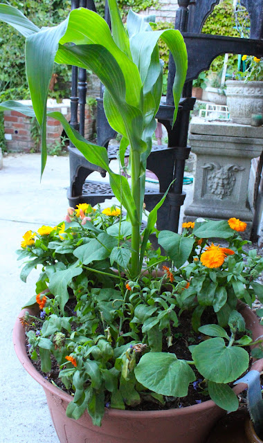 Earlier this year I planted corn on the cob, climbing beans and squashes as part of the Secret Garden Club preparation.
