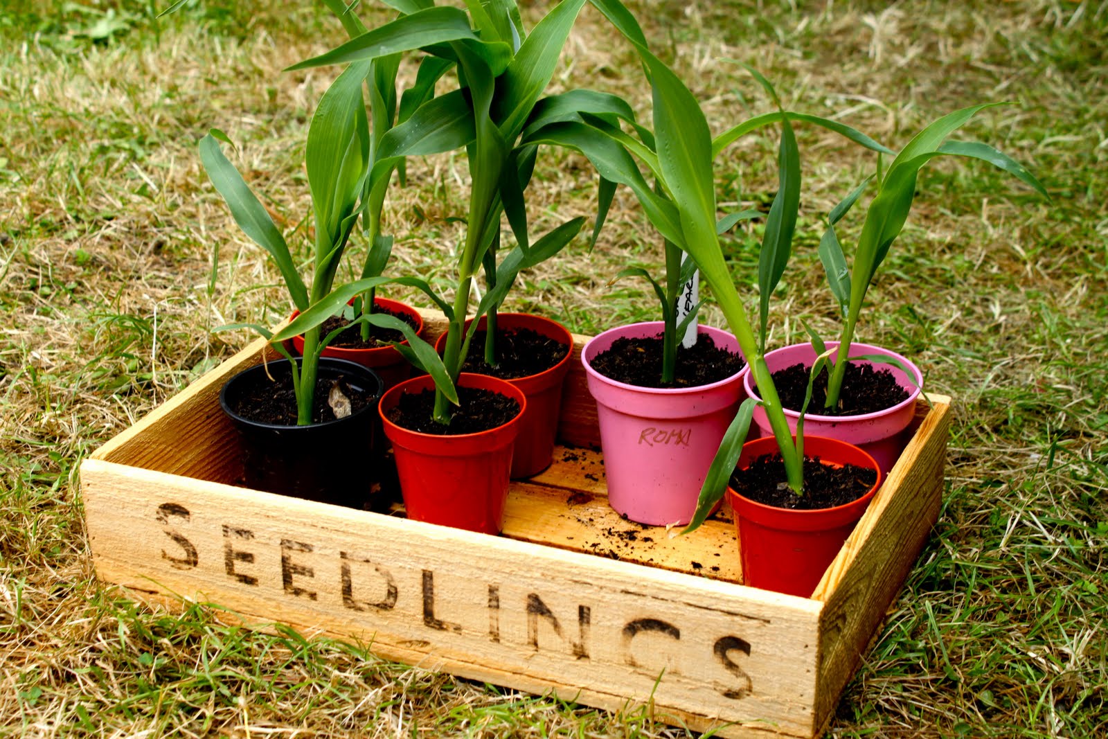 Beautiful seed trays and runner bean seeds: I started in April.