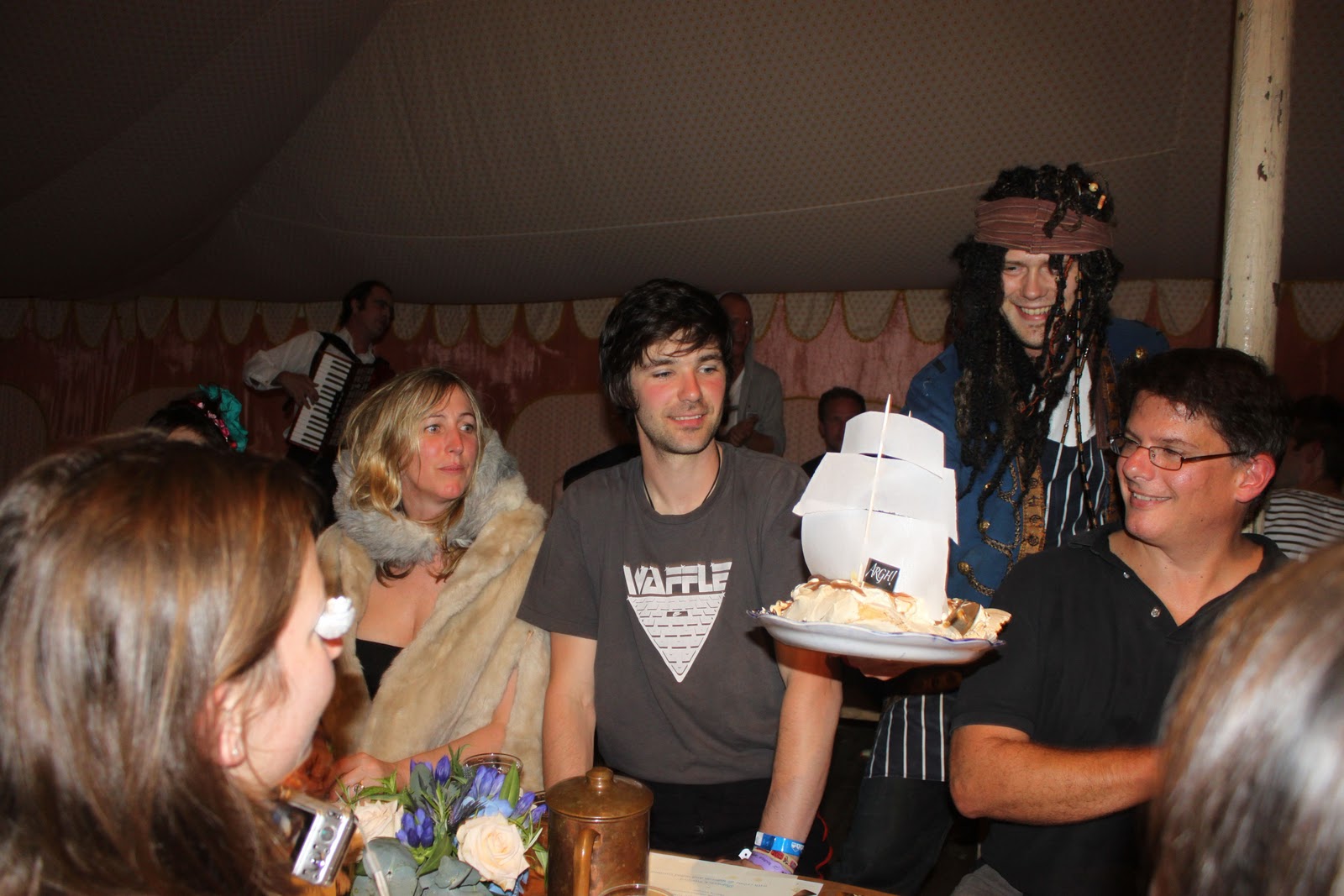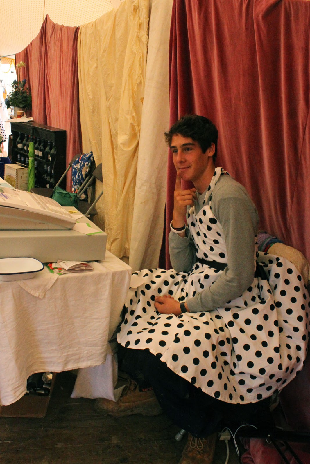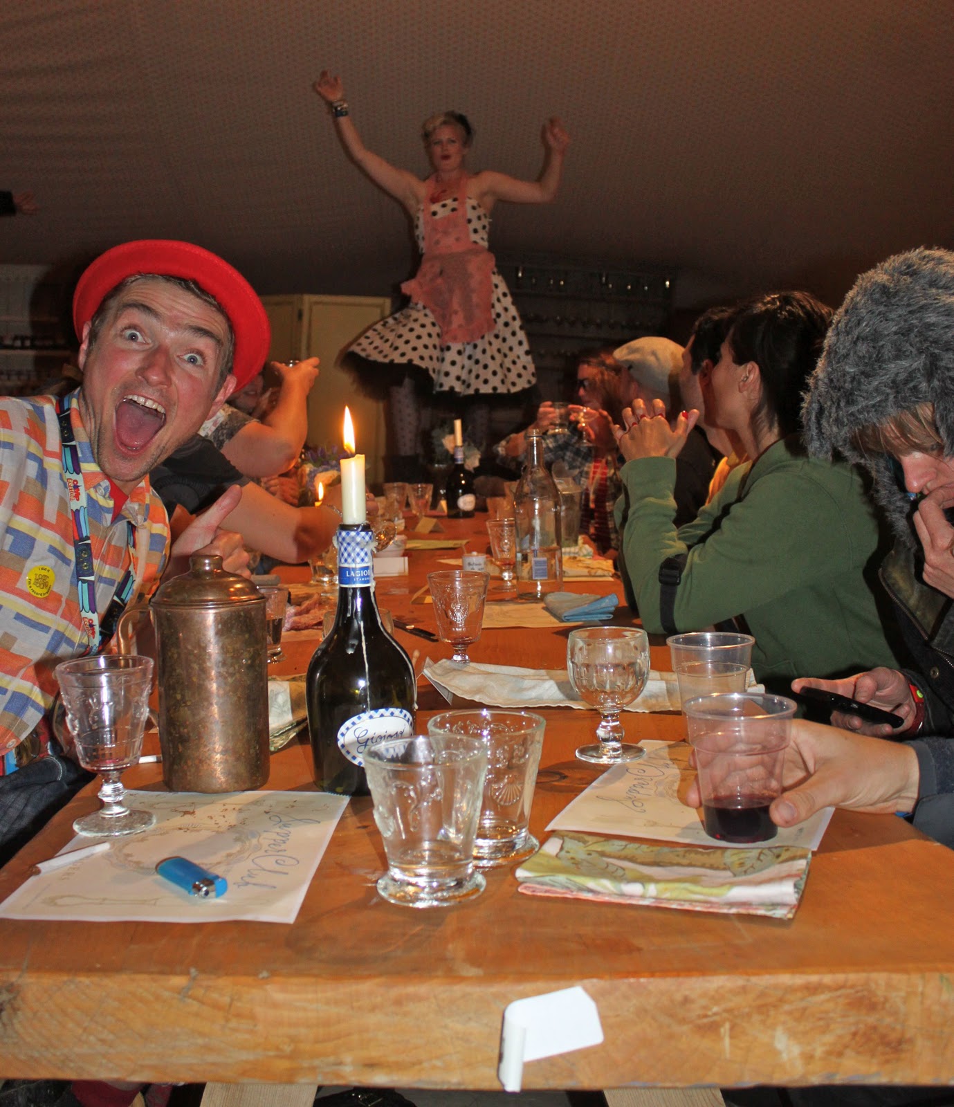 This is my friend Jim who is a builder in the South of France. Surprisingly, builder Jim took to being a Maitre D like a fish to water! He and Beggs came to back me up. You need bloke-age at a festival where things need fixing. Especially, as the festival wore on, the kitchen and restaurant began to sink. In the end the cooks were working at a 45º angle, sliding down the kitchen. In the dining room, glasses were rolling off the tables. It really did feel like a ship, the theme of my restaurant. For days when I returned I kept feeling like I was tipping on an angle, like a sailor on land.
