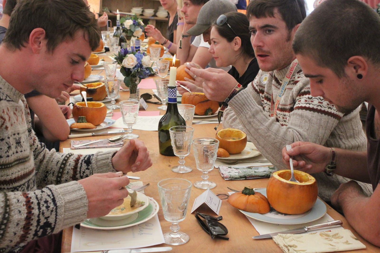 The days were long. We lived on crisps and chocolate buttons and the staff alcohol rider. (Yes, we were like rock stars). I warned staff in a pre opening talk that Sundays are tough days at festivals. Sunday was always going to be the day that hurt the most. A Saturday midnight sitting, a finish at 3.30 am followed by early morning prep for lunch. Sunday, I tumbled out of my caravan and was confronted with the first tears of the day: an exhausted KP who apologised for sobbing a request to go home early the next day.