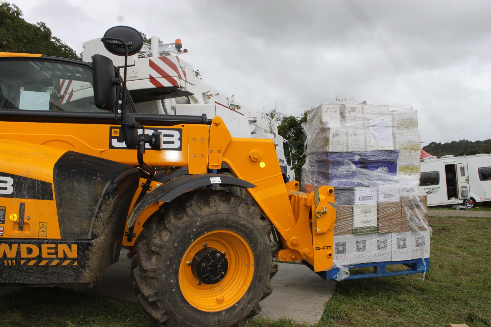 During the set up days for a festival, you find yourself doing rather macho things like lifting entire rooms over tents by crane. This was our wine store.