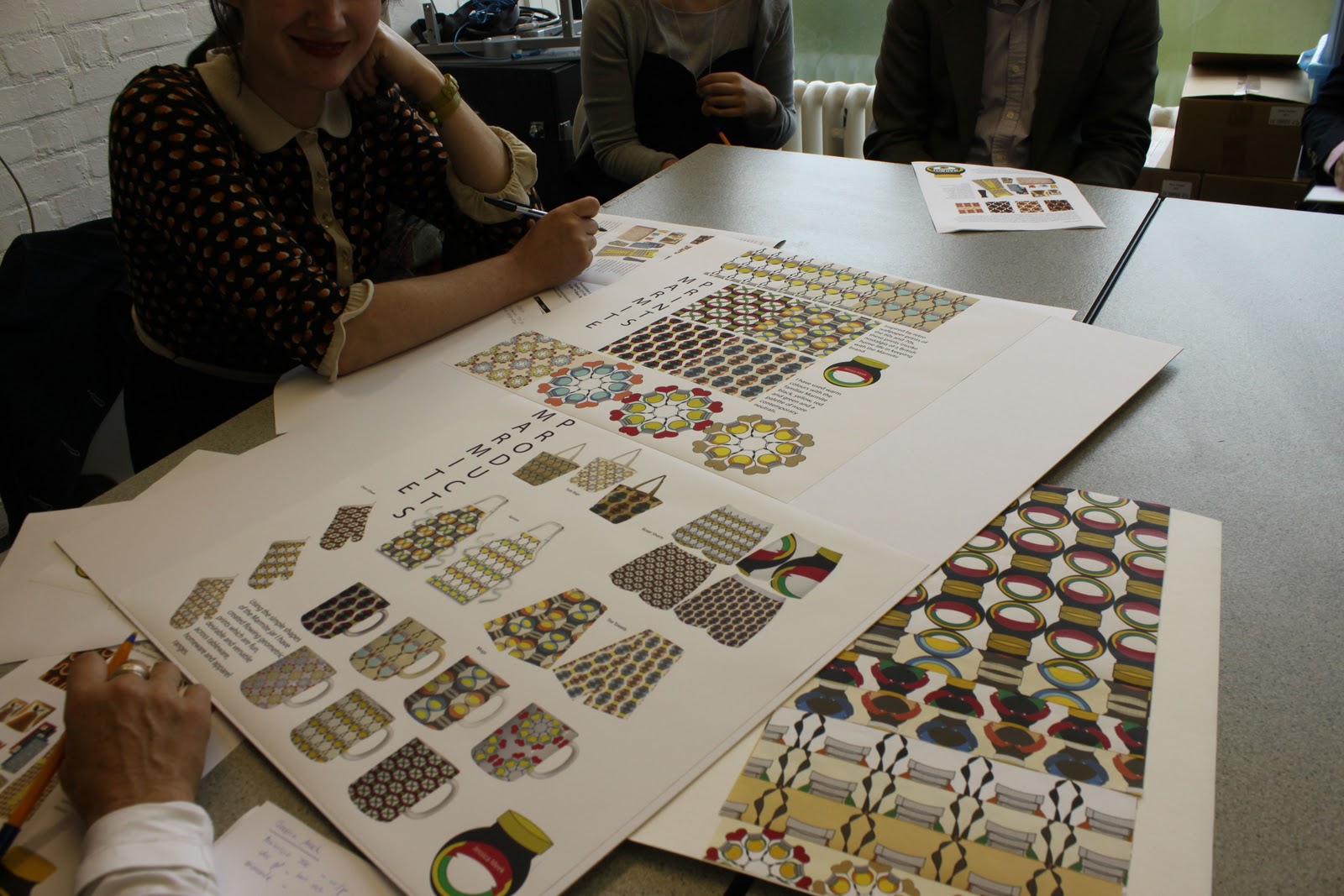 We were looking for something to replace the current line, based on Andy Warhol’s style, and we sat all afternoon while a dozen or so talented students showed us their ideas. The winner would see their design produced on mugs, plates, etc.