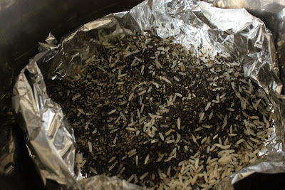 Put the tea/rice/sugar mixture in some tin foil (folded over a few times) in the bottom of your saucepan.