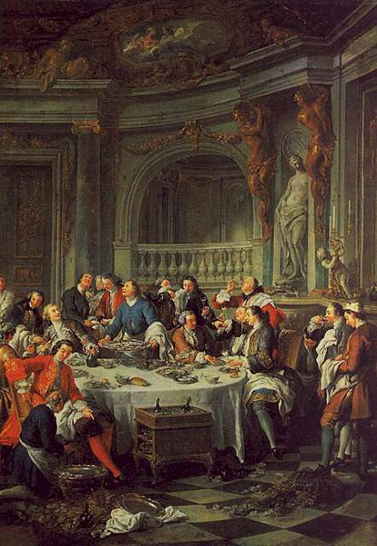 Luncheon with oysters (1735) by Jean Francois de Troy, believed to be the first time champagne is depicted in art.