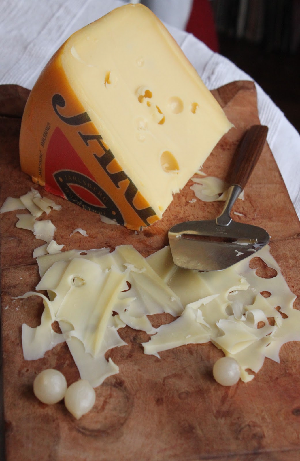 Serve yourself Jarlsberg cheese with typical cheese slice.