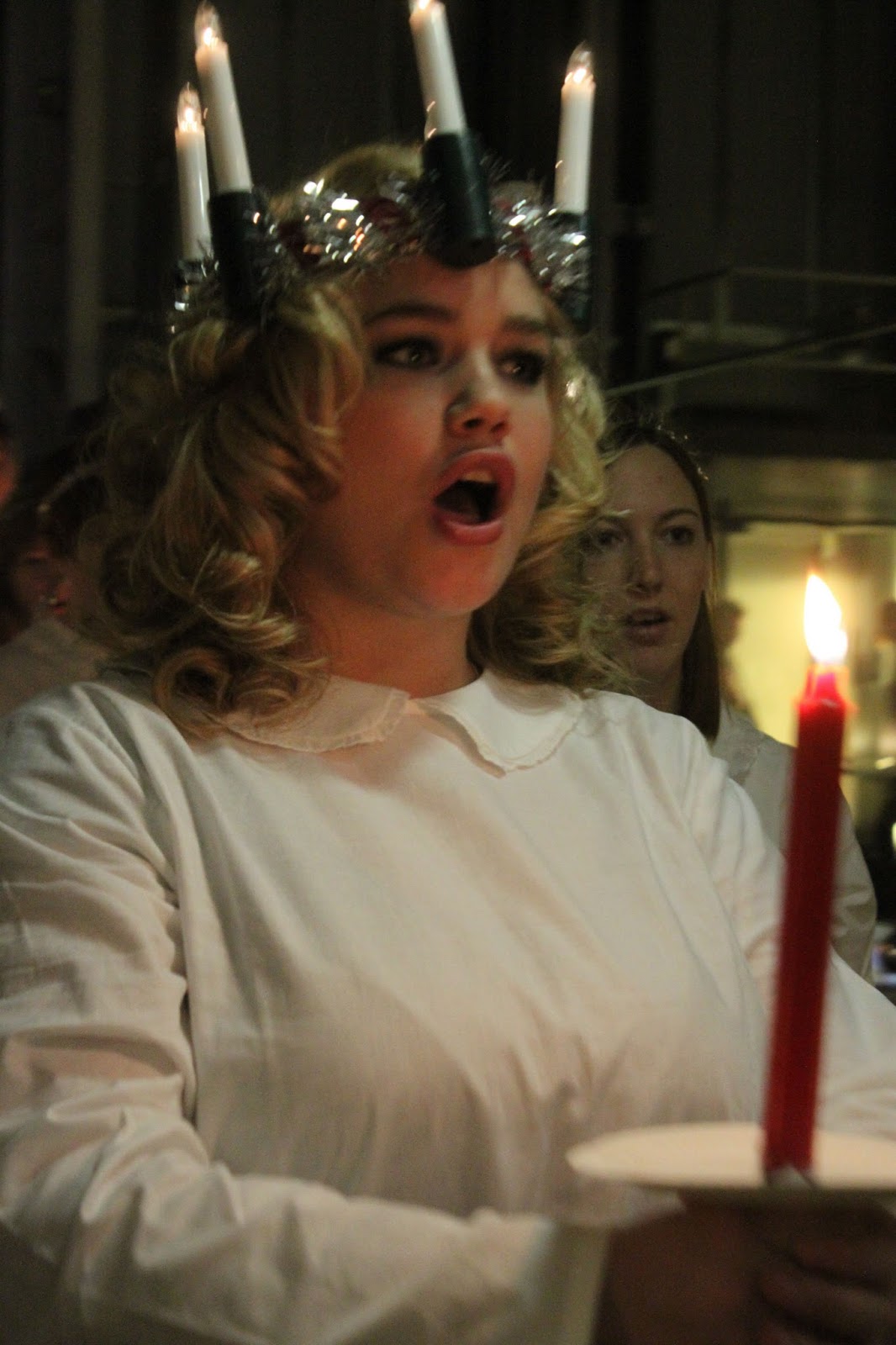 Tuesday 13th of December, St Lucia’s Day: I awake groggily with a start. What time is it? I fumble for my iphone. It says 7.15 am but with an hour time difference it’s 8.15 am. Maybe. I’m supposed to be at the Gothenburg tourist office at 8.30 am to see a Lucia choir. I flee half dressed downstairs, passing a group of choristers in white.