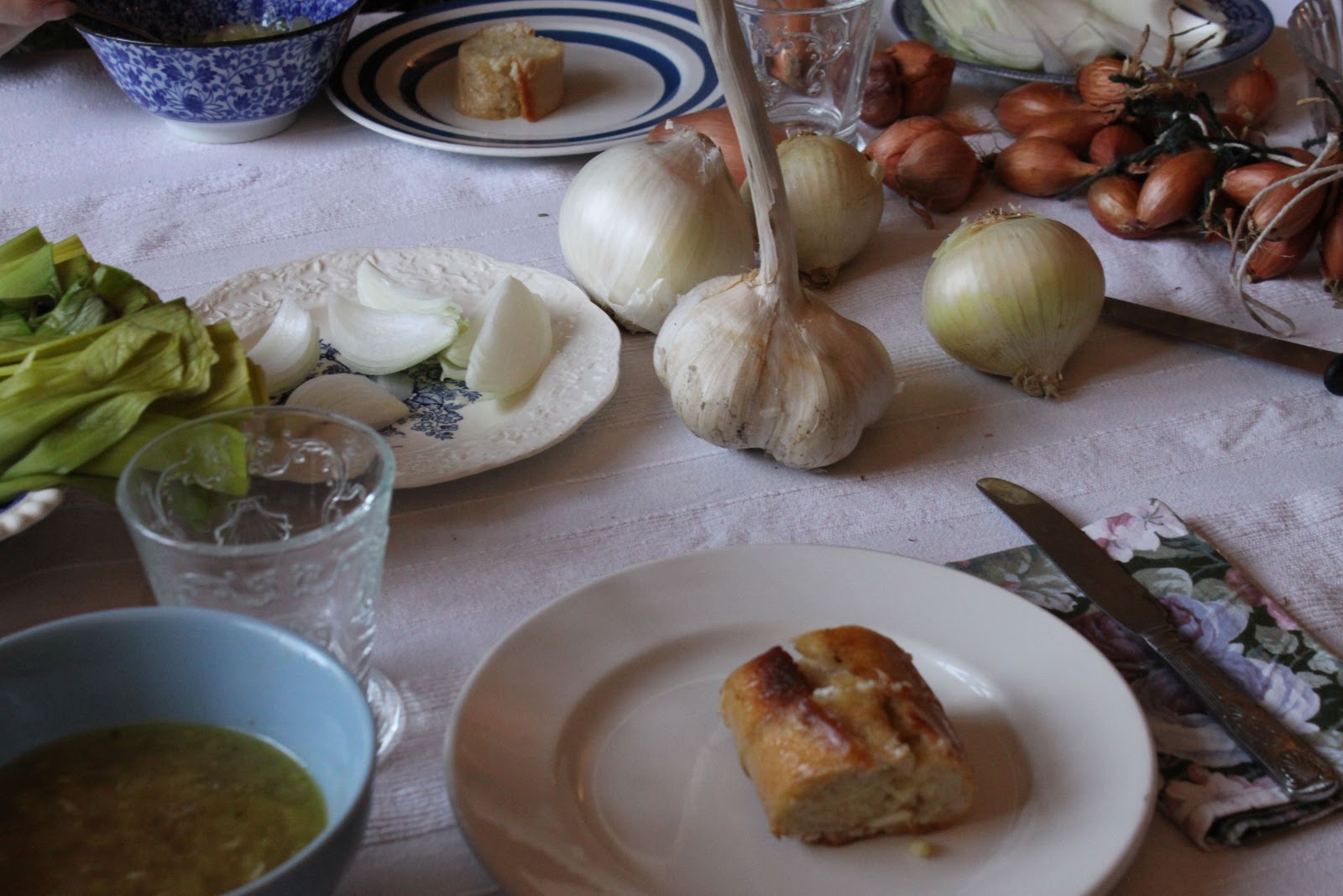 During our shortest day ‘All about alliums’ gardening workshop taught by Zia Mays in the dim frosty light, I was inside preparing a garlic, leek and onion menu for my chilly guests. I took pity on them outside and from time to time, they were topped up with mugs of White Glogg to warm their hands and, of course, their insides. To find out more about planting onions, garlic, leeks please read this fascinating post on our Secret Garden Club blog. I’ve tried to plant onions and garlic before and never succeeded so this was a useful skill to learn. We also learnt about Walla Walla onions which are supposed to be so sweet you can eat them like an apple!