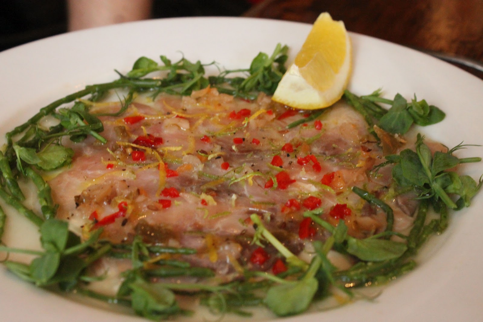 Gabriel’s mackerel ceviche is carved carpaccio style, almost transparent, the red slices going grey, cooked by the lime but refreshed by the red chillis and samphire dotted around. I have to stop myself from eating all of it.