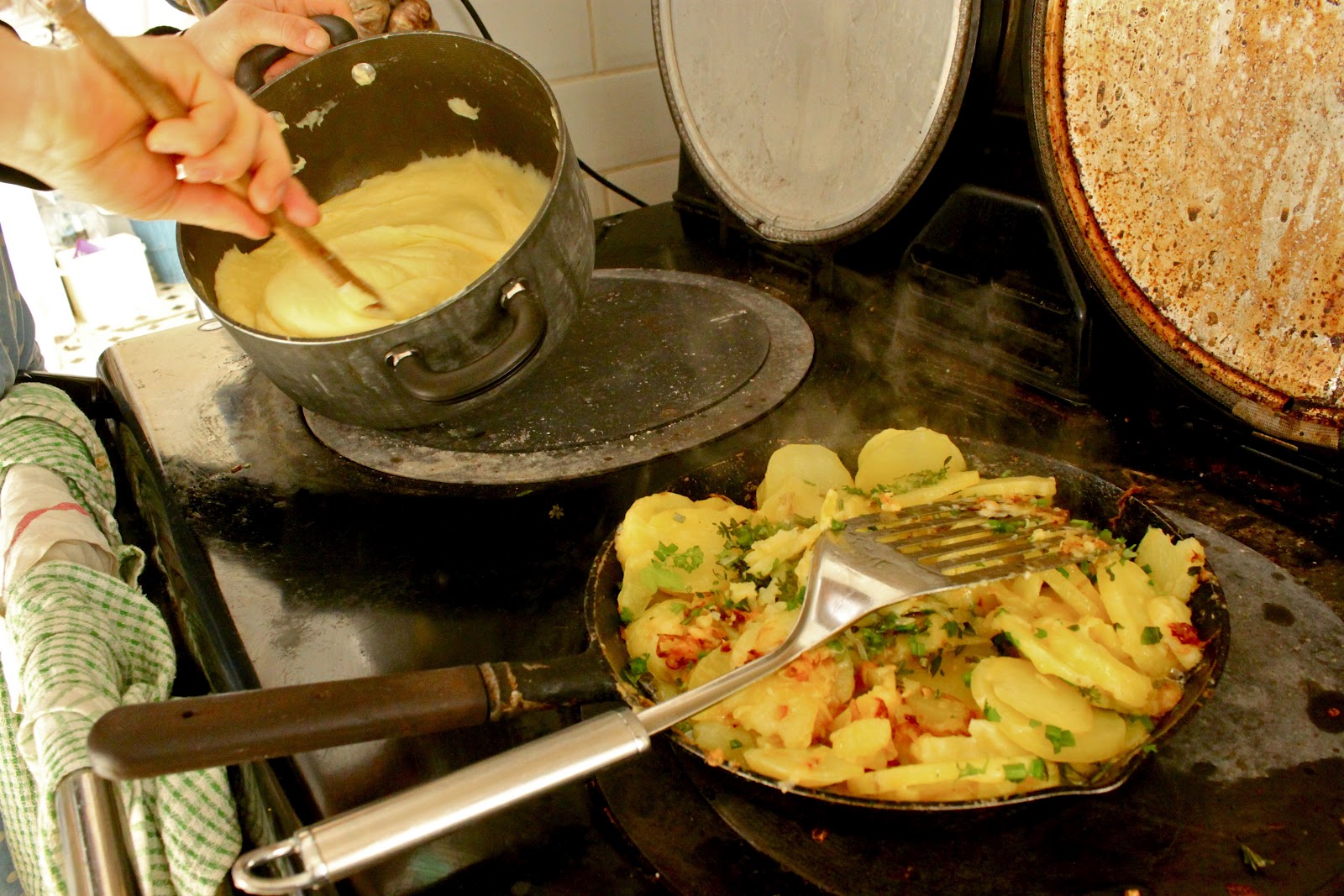 | Aligot and truffade on the Aga. |