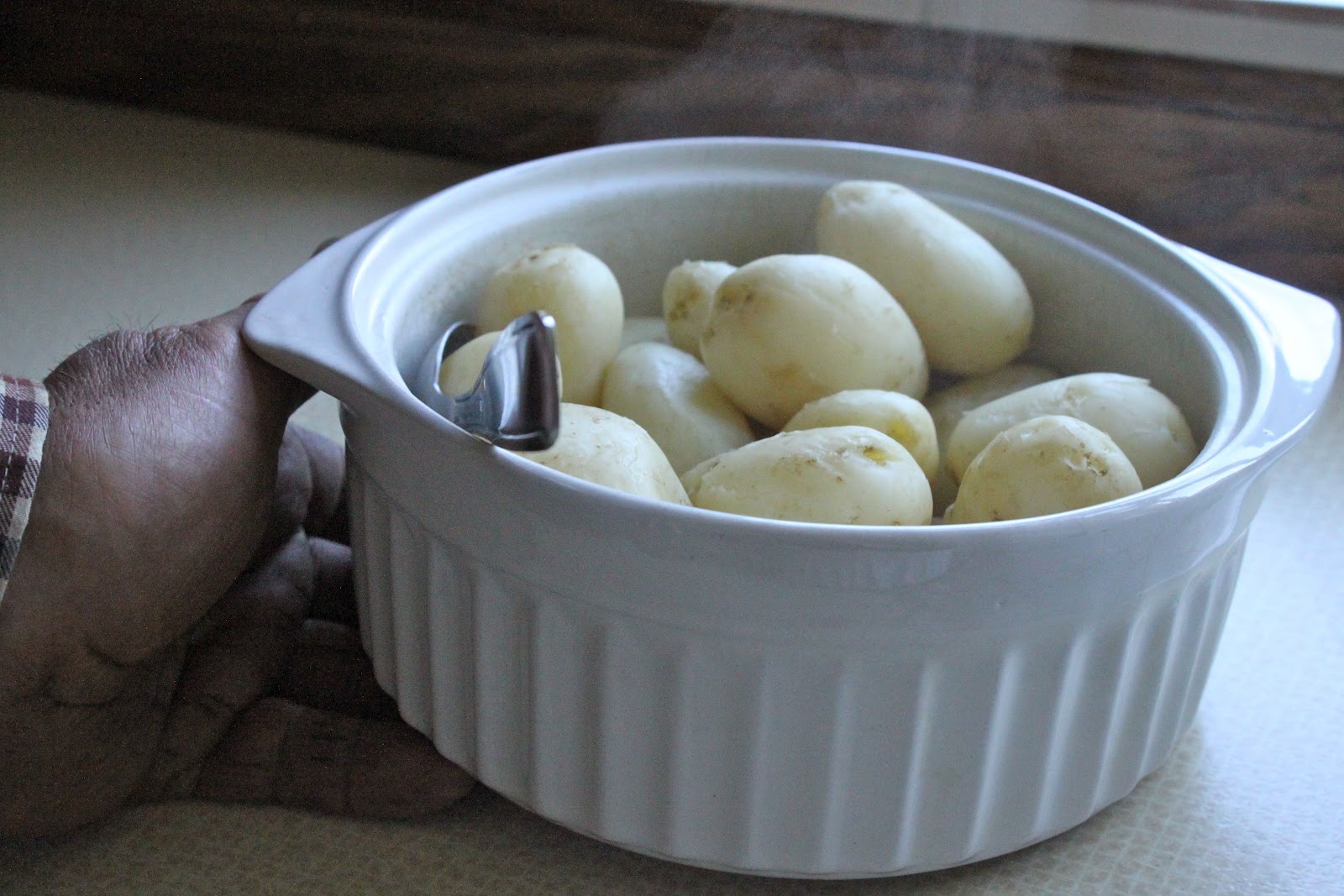 | Simply cooked à la vapeur, skins removed this time. |