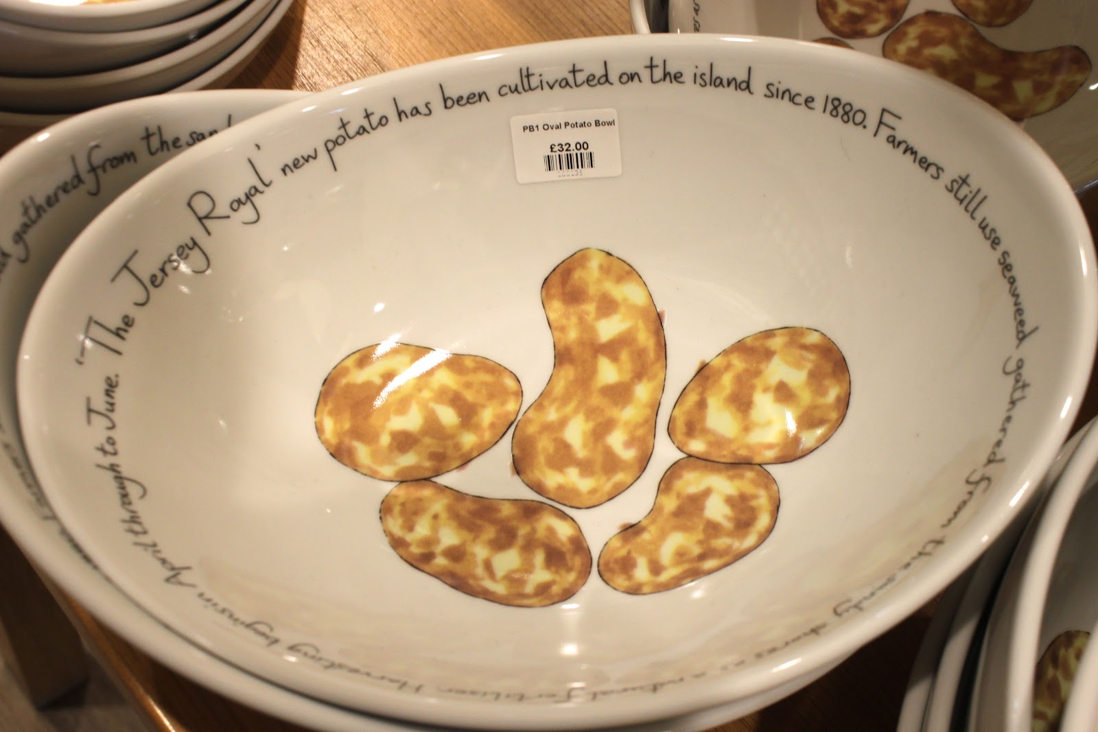 | The Jersey pottery makes bowls adorned with their famous spuds. |
