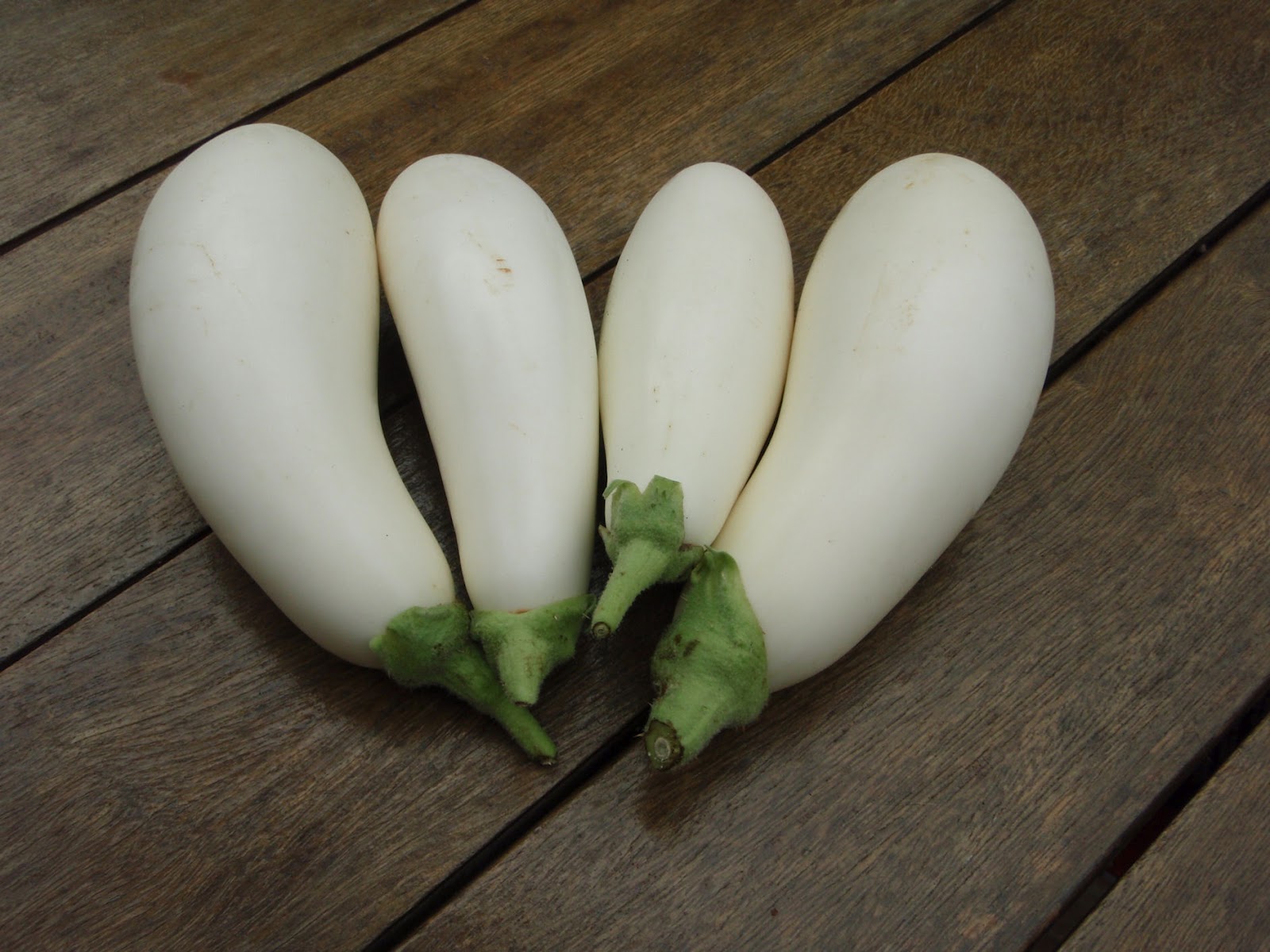 | The white aubergine variety Tango is firm-fleshed and sweet. |