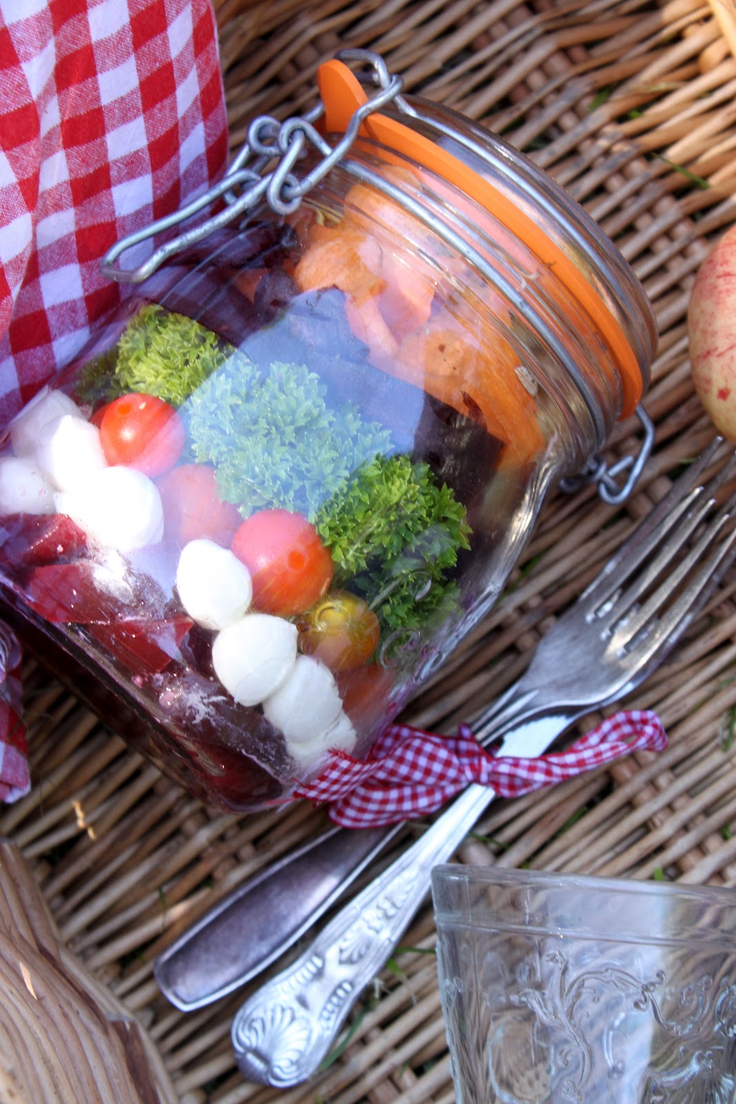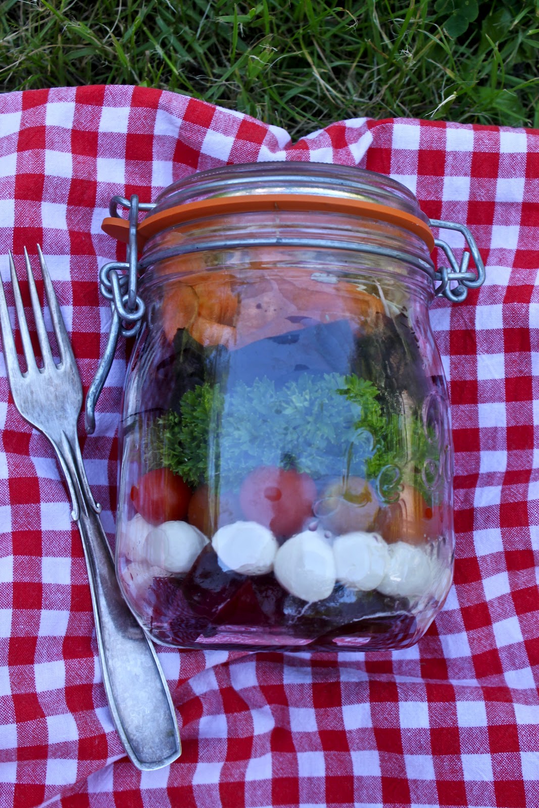 Tip: put the dressing in the bottom then turn the jar upside down once you’ve set up your picnic.