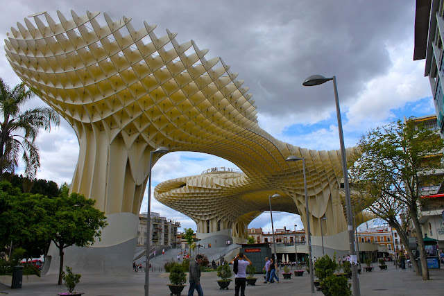 On our gastro tour Shawn and I discussed men, children, food, illness, the internet. A couple of years ago, Shawn got cancer. Living in Spain without family or husband, this was tough: she survived with the help of friends on the internet who provided emotional support and even donated money while she couldn’t work. Now recovered, or NED (no evidence of disease), she lives in an up and coming quarter in Seville, near the mushroom architecture of the Plaza de la Encarnacion.