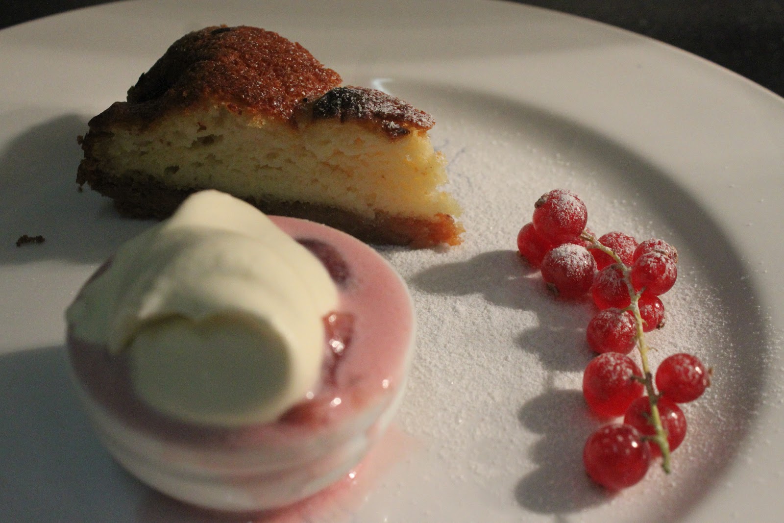 Dessert: Baked cheesecake, Hungarian cherry soup, Ogl Mogl (honey foam)