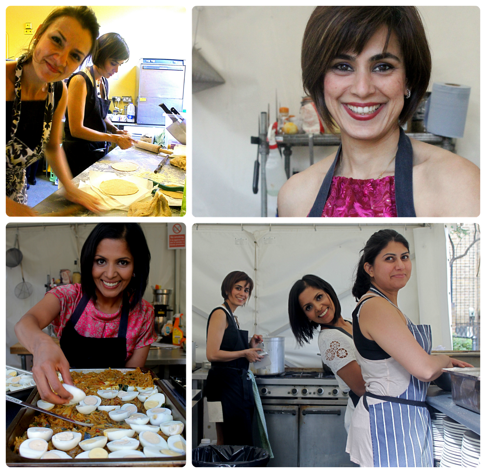 | Take four girls: L to R clockwise: Rekha Mehr, Pistachio Rose; Summaya, Pukka Paki; Meena, Sheba and Sumayya; Sheba of AI Cookery. |
