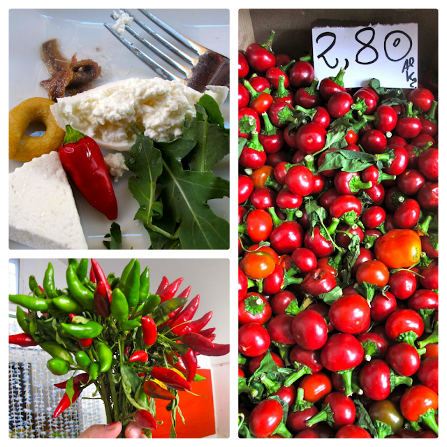 This visit made me realise how little I actually know about Italian food. Every town, every region, has a speciality and often the food is unknown or difficult to buy elsewhere. At the airport I bought liffa di mandorle, an almond milk syrup that was just divine, heaven sent even. I could have ordered coffee flavoured with this syrup in Puglia but I didn’t know about it! Another discovery: bouquets of small red round pepperoncino chilli peppers. Oh my god! I brought back a couple of bunches of these chillis, both pointy and round. They contain just the right amount of heat, you can eat them, seeds and all, without fear.