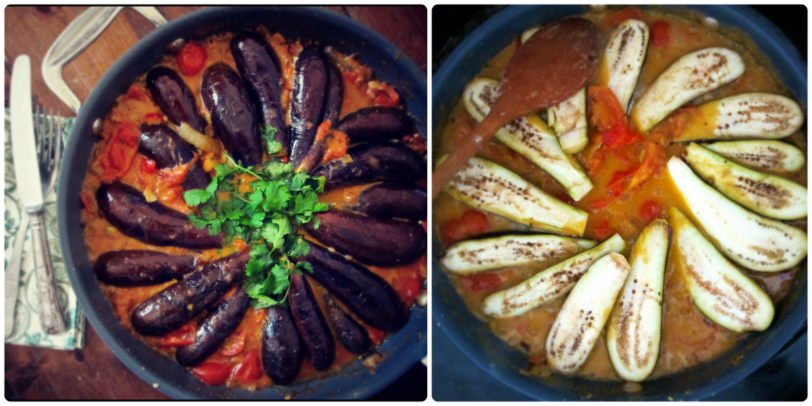 My coconut brinjal bhaji, recipe in my book as well as my coconut dhal.