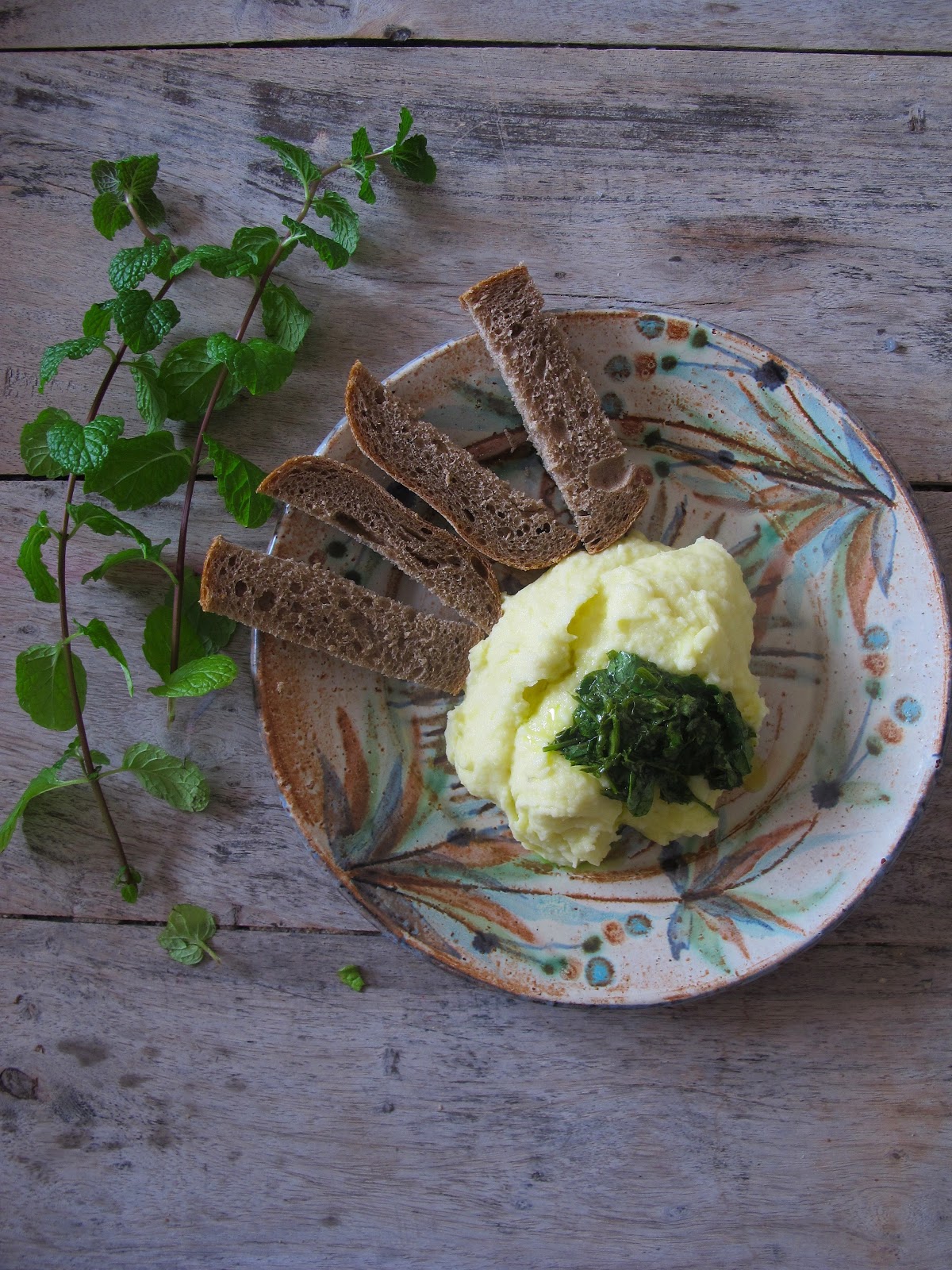 Well you are wrong there, it’s super moreish, my lot couldn’t stop eating the stuff. One day we had it as part of some meze, the next as an accompaniment to roasted salmon. Garnish with fresh mint (one of the most popular herbs in Cypriot cooking) and flat leaf parsley pesto. This is easier if you have a food processor or an electric mixer, it’s got to be as silky as a babies bottom, lumps would ruin it.