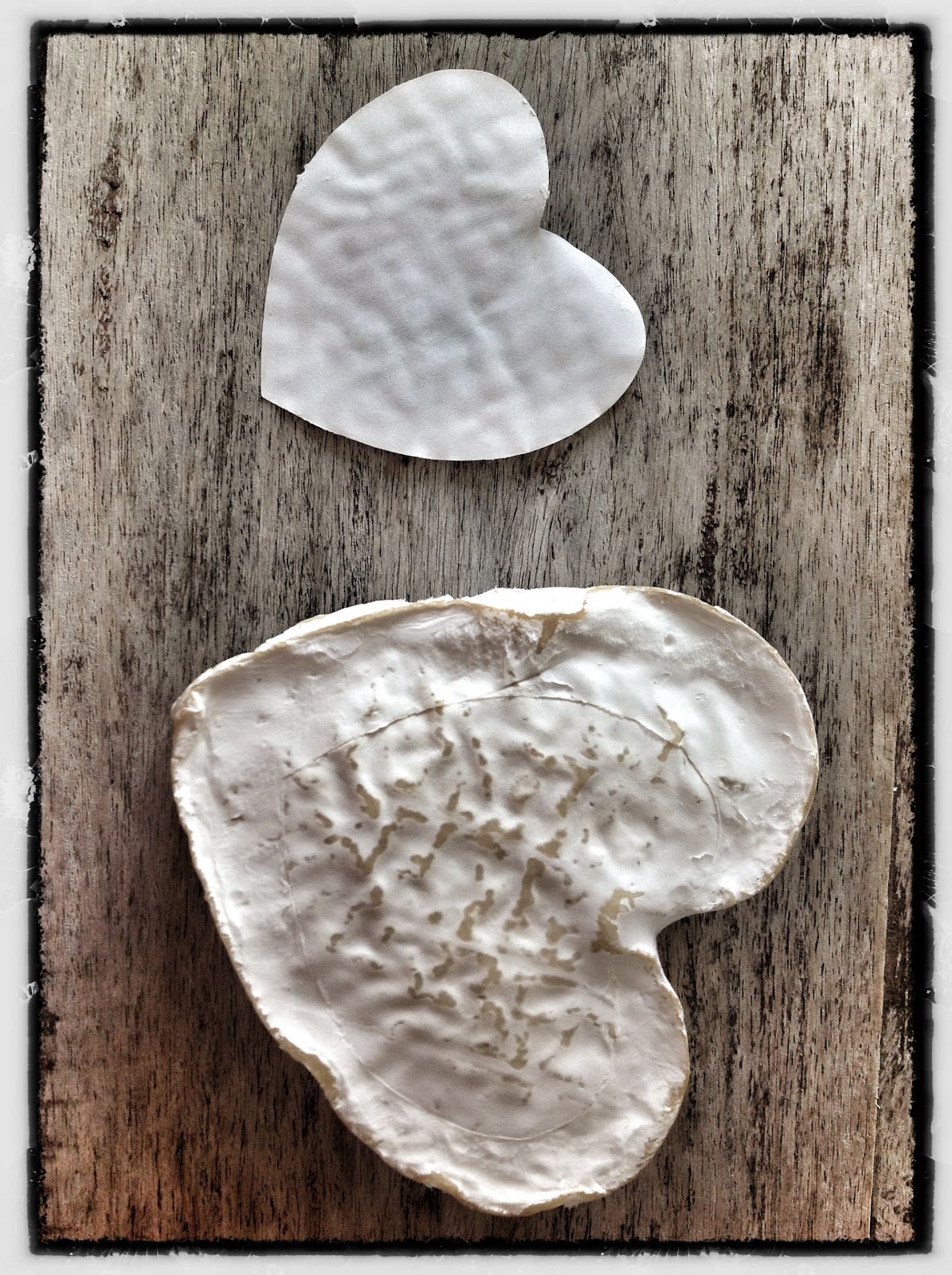 Neufchatel* cheese in it’s classic heart shape is one of France’s oldest cheeses. It’s a Camembert-like soft cheese from Normandy designed to woo, legend has it, the British soldiers during the 100 year war.