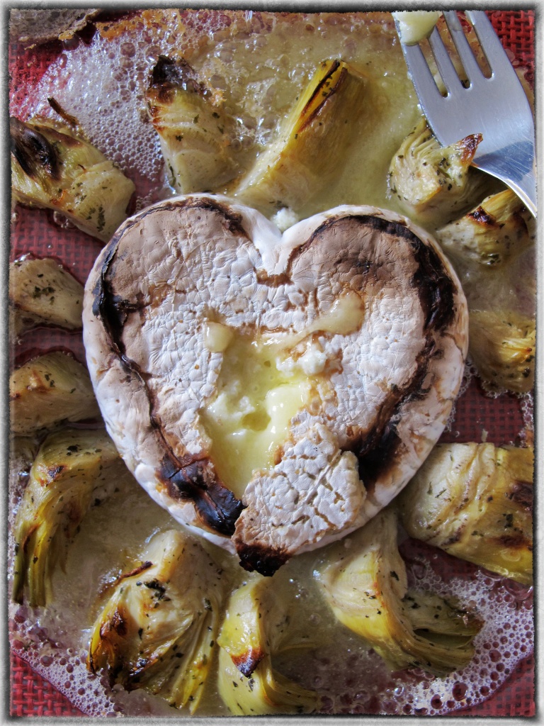 Serve with the suggestions above for dipping into the creamy melted interior of the cheese. The artichoke hearts also contrast nicely with the cheese. Serve with a white wine such as a Riesling, perhaps a Gerwurtraminer.
