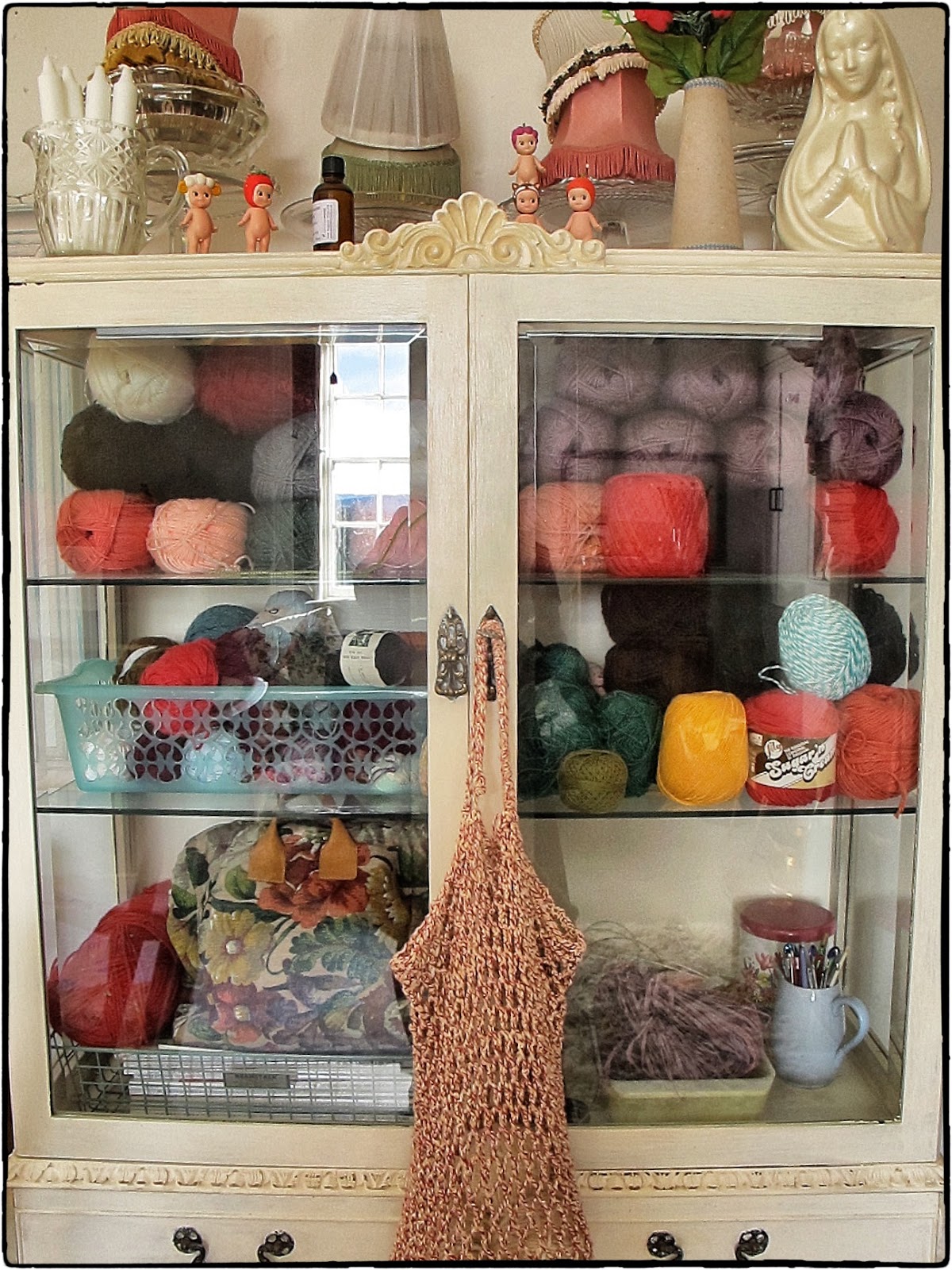 | Rachelle’s knitting cabinet. Her hands are never idle. |