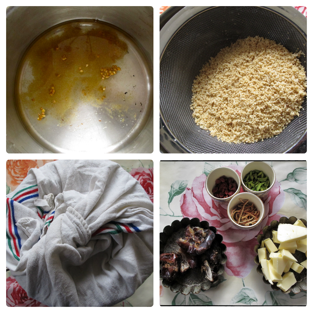 This is a step by step guide of the best way to make couscous. It’s a bit fiddly, and requires that you eschew such blasphemies as quick-cook couscous. But with this method each grain will lift and separate, just like a Playtex bra. No clumps, no sogginess.