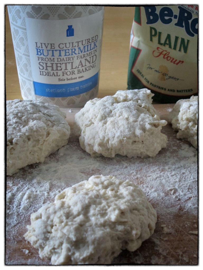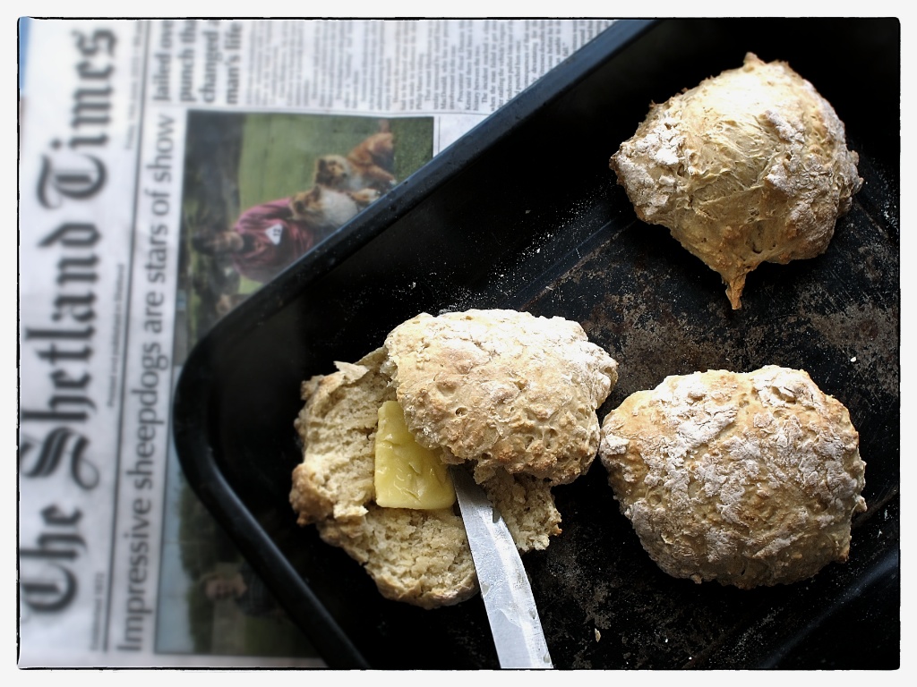 Bemoaning the use of ‘tinned meats’ by modern housewives, “change, although inevitable, is to be regretted, for there is no doubt that a hardy race (the Shetlanders) with good teeth, muscle and bone, thrived upon the food used langsyne*” Miss Stout wrote ‘Cookery for Northern Wives’, from which I got my recipe for bannocks, a typical scone style bread from the Shetlands.