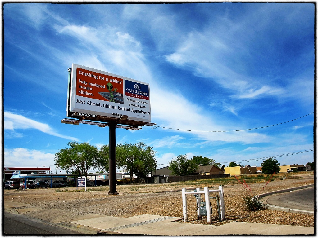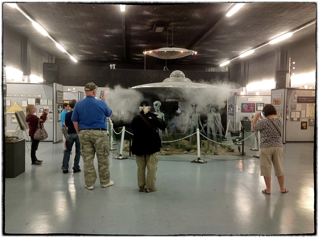 Ranchers still run Roswell, site of the famous UFO crash in 1947. They are a conservative bunch, according to the green haired receptionist of the scuzzy motel where I stayed, and they loathe the tourist industry that has grown up around the UFO. Beware of other motels, she told me, most of them are inhabited by people on crystal meth. A local store opening up couldn’t find staff that had a clean tox test, for instance.