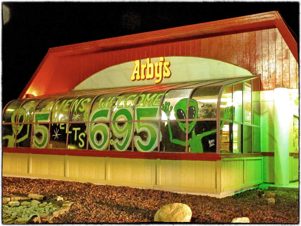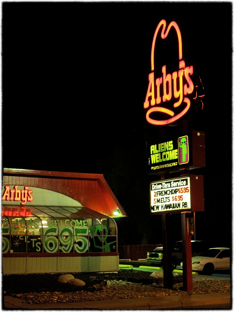 I loved Roswell, it was America from the 1950s. Everything was drive-in. Without a car you couldn’t live there, blocks were a mile long. Breakfast at Dennys was surreal: a special ‘bacon’ menu booklet, elaborately courteous staff and enormous waddling customers spilling over the sides of their chairs.