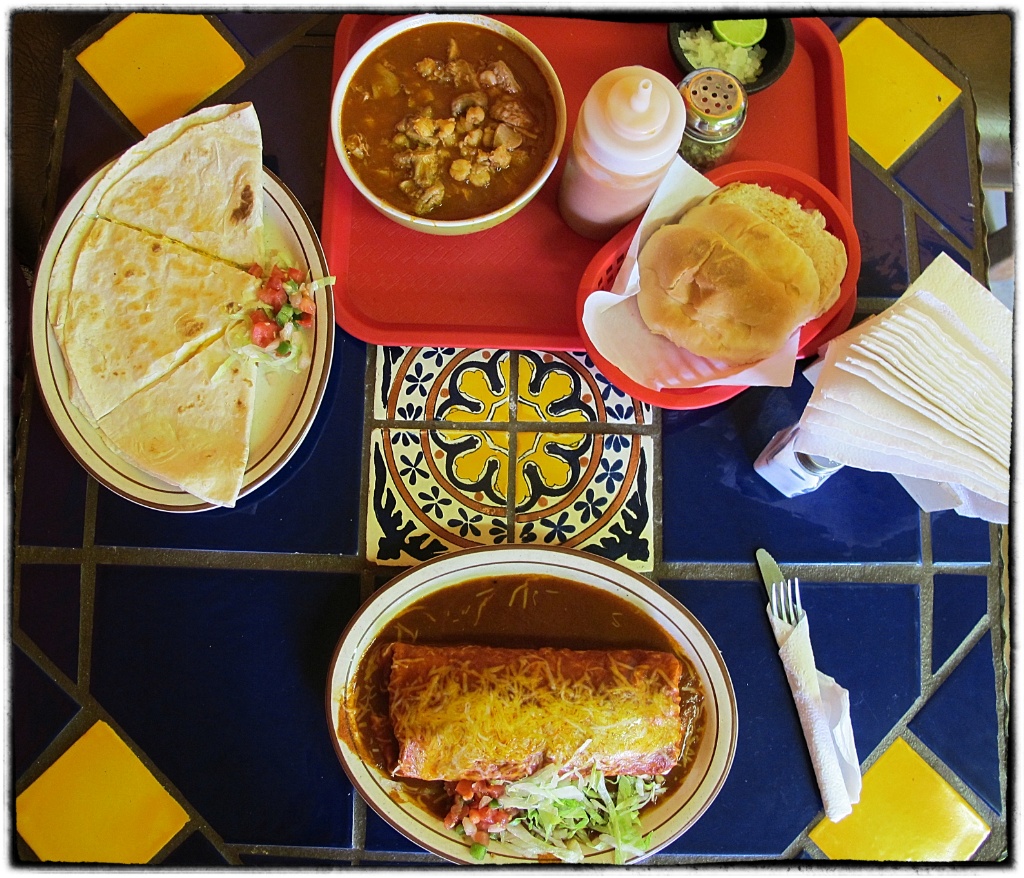 Much of New Mexican food is Mexican influenced but there are differences. New Mexican dishes are ‘smothered’ with sauce, red chile stew or green chile stew. The ingredients are slightly different: Anaheim chilli peppers rather than poblanos for instance.