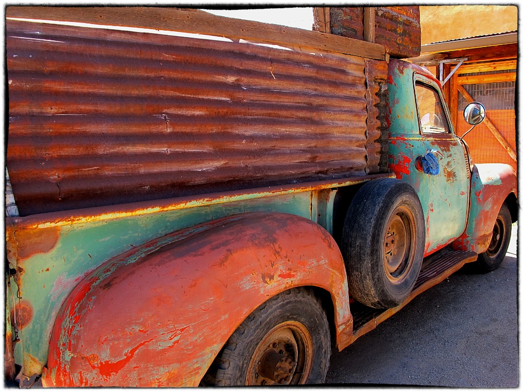 Genuine cowboy hats, hand made and steamed into shape, are very expensive, minimum $1000, from O’Farrell in Santa Fe.![]() And here is our Brad Pitt. ![]() ![]() A rusty truck, with a piece of denim stuffed in place of a petrol tank cap. ![]() |
