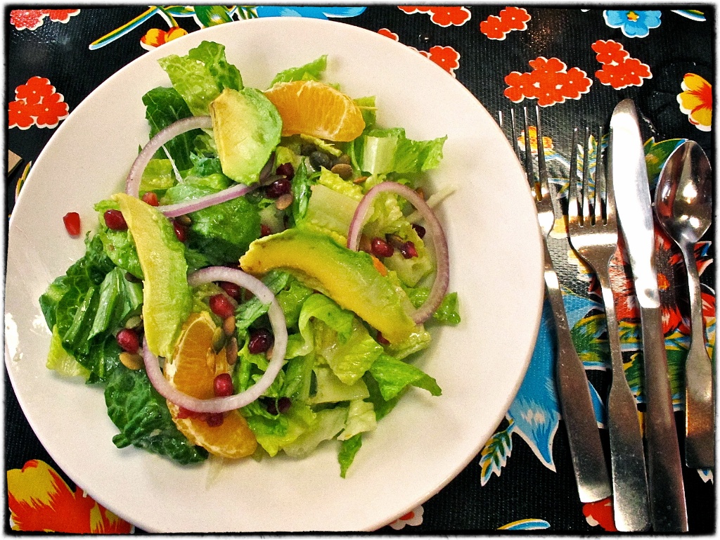 Citrus salad with avocado and jicama, a kind of Mexican turnip