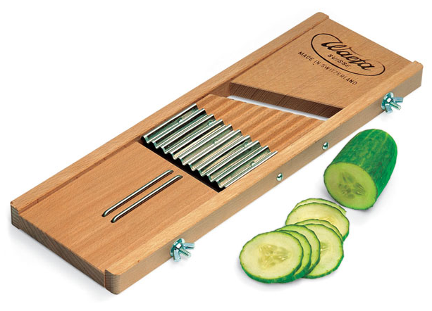 You need thin slices? Some chefs recommend the Benriner mandolin (£16.32). I don’t have one of these yet, I have an old fashioned antique wooden one, the Swiss Waefa slicer (£45), which is still being made.
