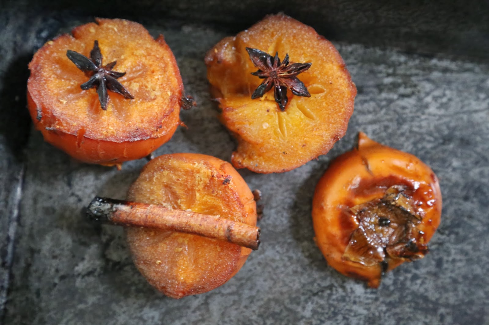 1 Persimmon, cooked in spices such as star anise, grated nutmeg, ground cloves with