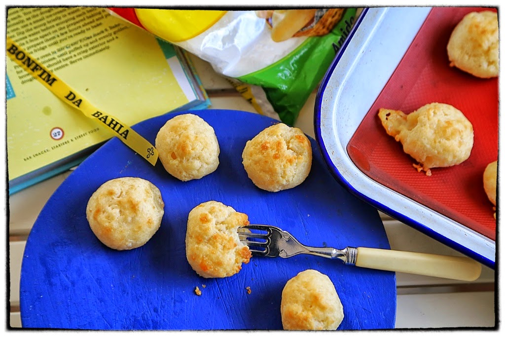 This recipe, ‘pao de queijo’, cheese bread, is adapted from The Cabana cookbook, a beautifully designed cookbook with Brazilian recipes. I’ve tried this recipe a few times from other sources and this one is the best so far. I used something called ‘sour starch’ from Yoki, a manufacturer of Brazilian foods that you can often find in small stores. This sour starch is gluten-free and made from manioc or yuca or cassava. You can really see the African influence on Brazilian cookery with this ingredient; it is popular in Africa and Brazil, with a high carbohydrate count but very little protein. There is also ‘sweet manioc starch’ from the same manufacturers which is finer. A combination of both gives you both the chewy inside and crispy outside of the classic pao de queijo. The most important one however is the sour starch, you won’t get an authentic result without it.