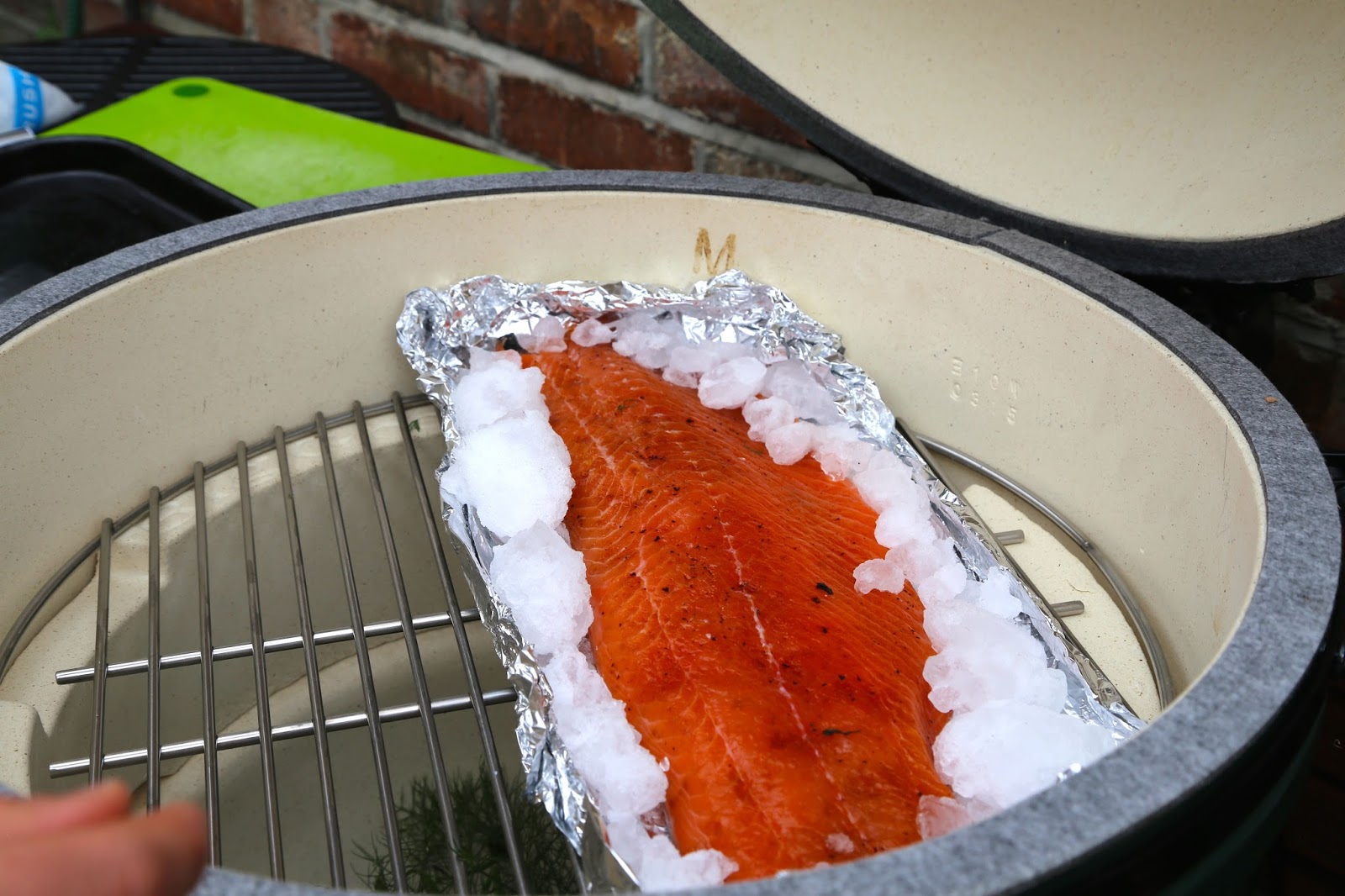 A second technique is to light 3 or 4 BGE charcoals (you get a bag with it) and overlay the charcoals with wood chips. Make sure that the temperature doesn’t rise when cold smoking. If the BGE gets too hot, you are hot smoking rather than cold smoking!