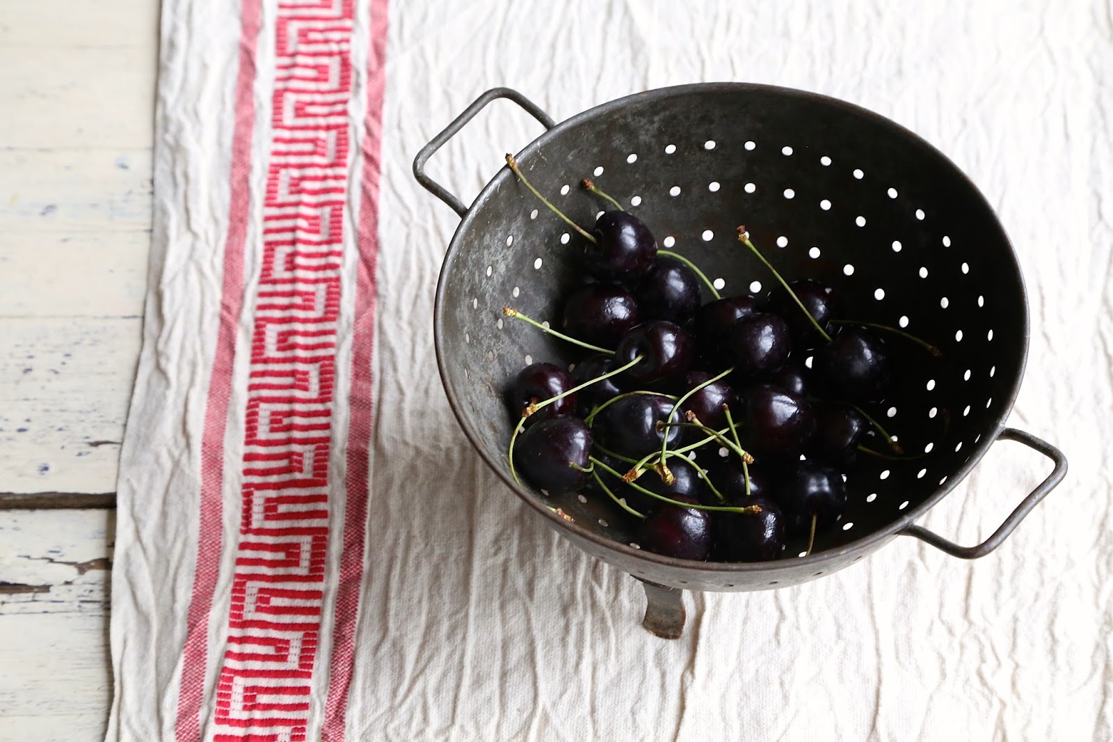This weekend I was sent an enormous box of giant juicy Kordia cherries by Adventures in Fruit. Saturday, Sunday and Monday I ate a kilo a day by myself: I had purple stained fingers and lips but I just couldn’t stop. It got to the point that I wouldn’t have enough cherries left over to create a recipe.