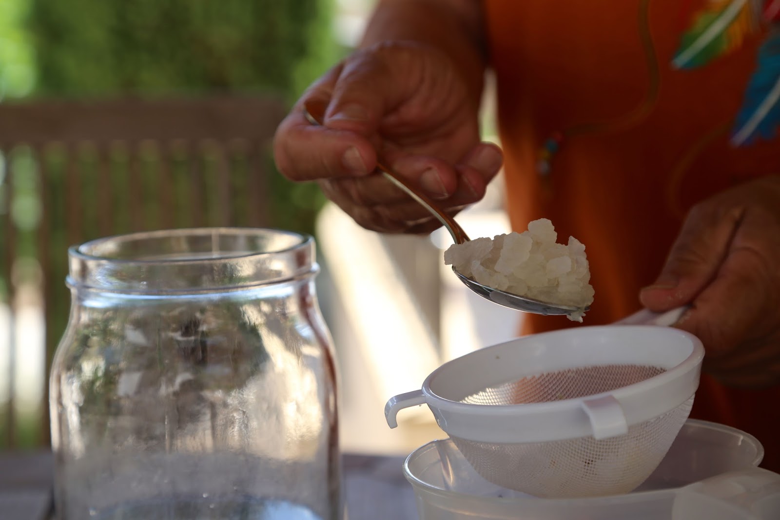 2) Strain out the milk kefir grains using the sieve into another clean jar and start the process again.