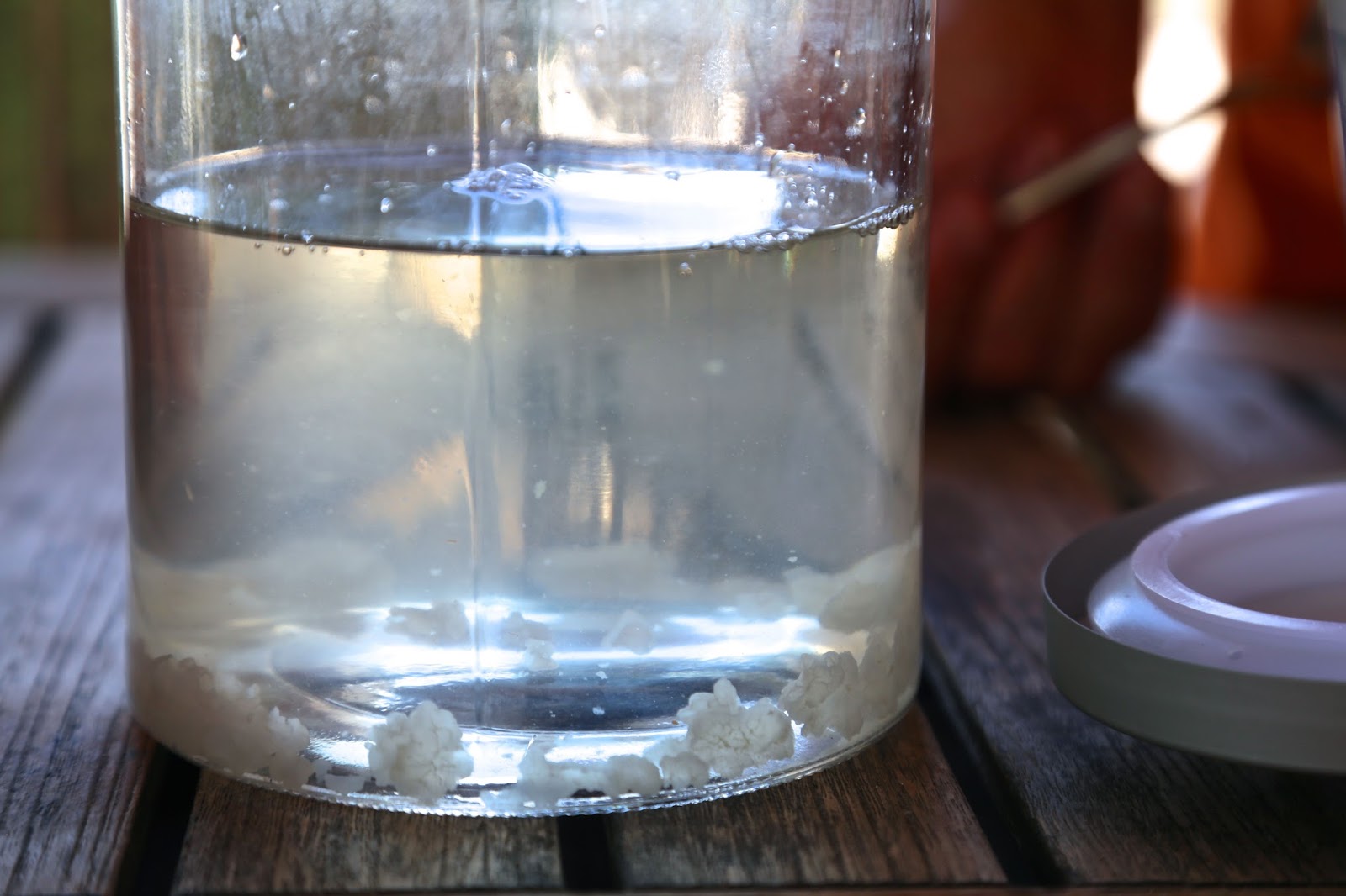 Use organic sugar for this, white sugar gives a sweeter kefir which is less bubbly. Do not use honey, it contains anti-bacterials. Use chlorine free water (filtered or mineral).