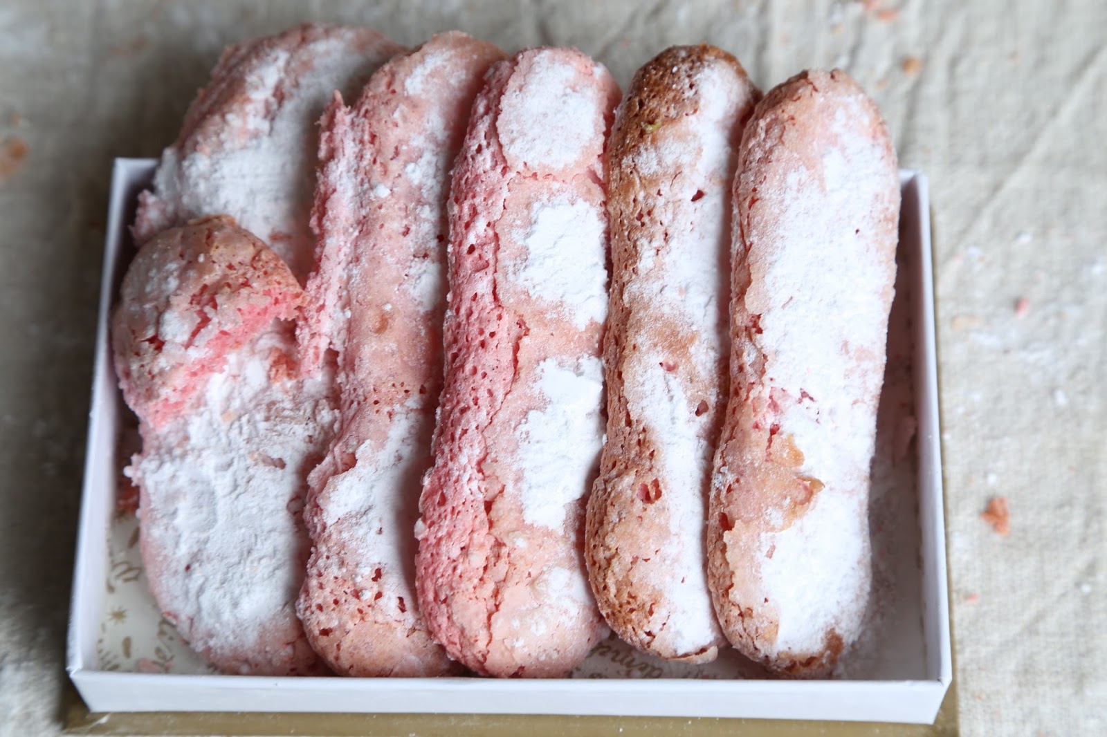 These will be piped by hand so they won’t look exactly like the Biscuits Roses de Reims but they will look like funky sponge fingers.