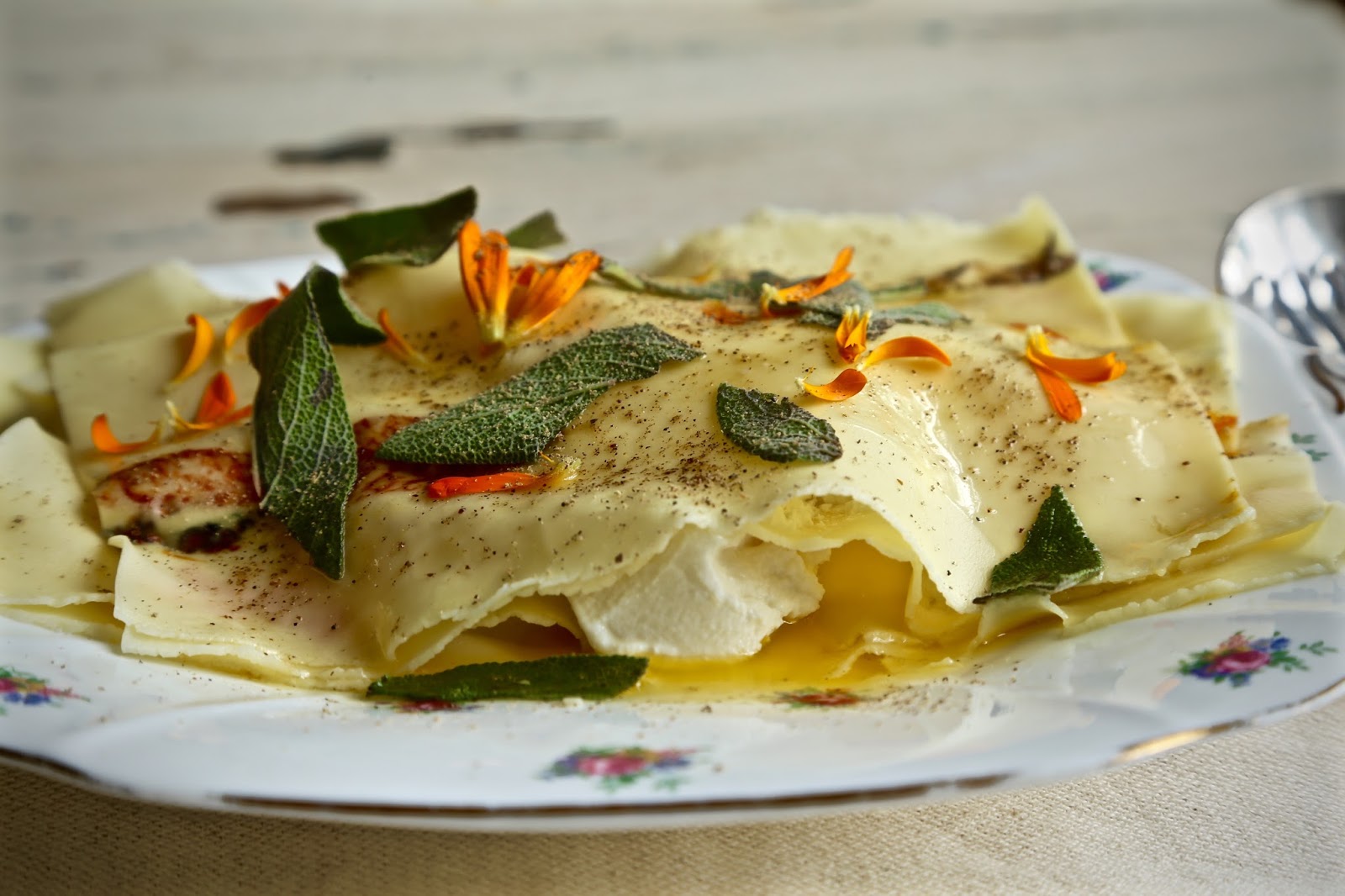I cooked 3 to 4 leaves of lasagne per person, draining it in a colander then sandwiching it with fresh ricotta cheese and drizzling it with the sage and butter. I wouldn’t cook more than say 8 leaves at a time, you don’t want them to stick together. So serve guests two by two.