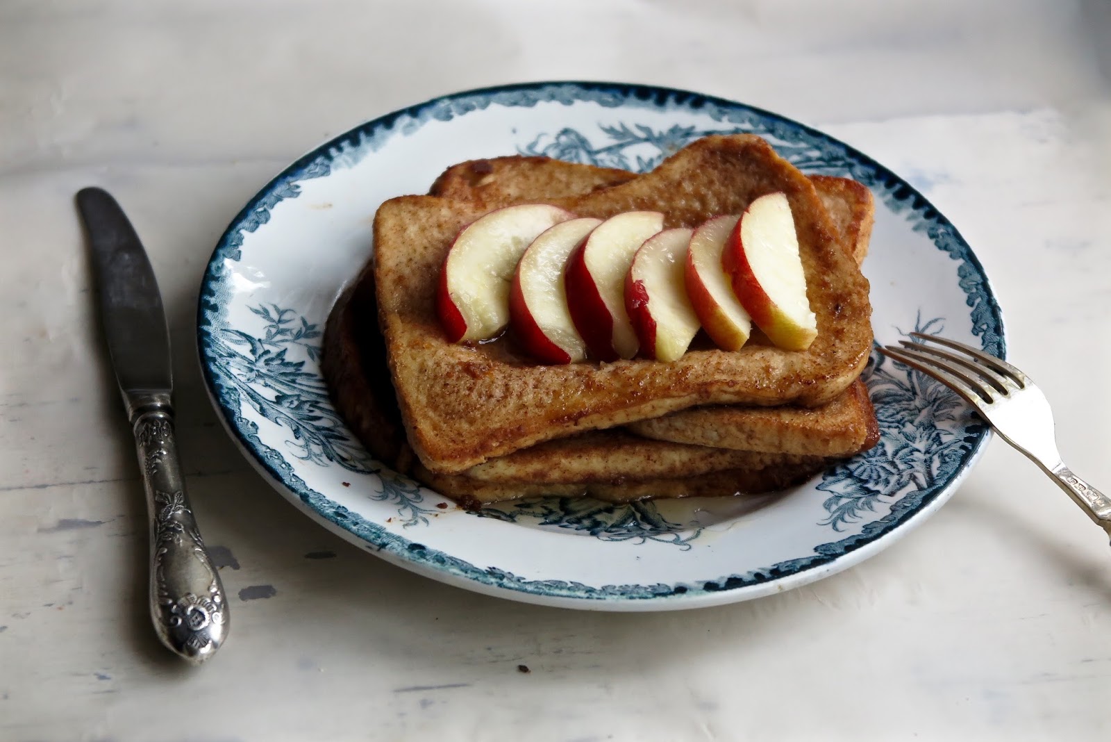 French toast with maple syrup and nectarines (vegan and non vegan)