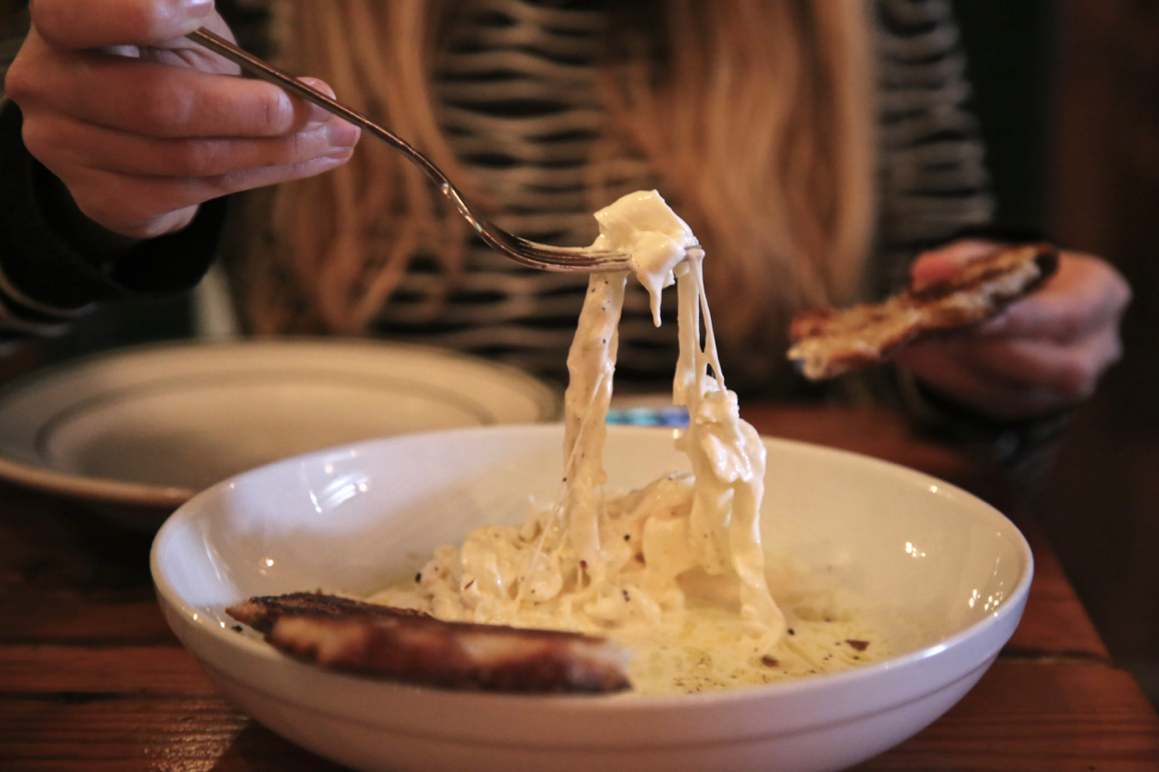 This is the second time I have visited Roberta’s. Last time I did an interview with Heritage Radio, (amazing food radio) housed in the same building, and scoffed a tasty grilled cheese sandwich. Roberta’s doesn’t look like much from the outside, you’d hardly notice the scruffy red door. Inside there is a pine scrubbed dining room, a garden, a radio station, wine classes, ovens. The food is so good. We noticed a trio further down our table and we said, When Harry met Sally style: ‘we’ll have what they’re having’. That was a big bowl of stracciatella cheese (burrata in creamy strips with char-grilled sourdough that you dip in the cheese milk), then a large sharing bowl of pea soup. We also had fresh pasta with cacio e pepe, then root beer and peanut butter ice cream. My virgin Bloody Mary was fantastically acidic and flavoursome, with plenty of salt and pickles. The pizzas looked the business too but we could barely move. Reasonable prices, a must visit.