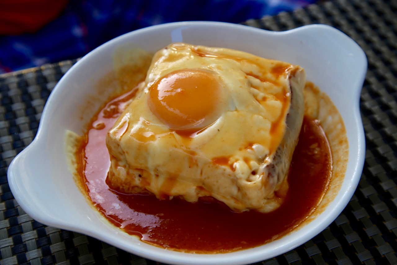 When it comes to eating, try the multitude of Portuguese egg yolk based pastries, the rustic bread, the post office red tomatoes with actual flavour, the pink raspberries from the Douro Valley, the intense olive oil, the saffron barley sugar, the snowy copper roasted almendoas de moncorvo. The signature ‘dish’ of Porto is an outrageous sandwich known as a ‘Francesinha‘ or little French girl. It’s a Portuguese bastardisation of a Croque Monsieur but way over the top, including a multi-meat bulging interior, a cheese sauce blanket, a spicy tomato sauce and a fried egg on top. This is more than a mere snack. You can find vegetarian versions too and I’m working on a recipe. In restaurants, order local Douro wine including Port and grilled sardines for a simple but reliably delicious dinner.