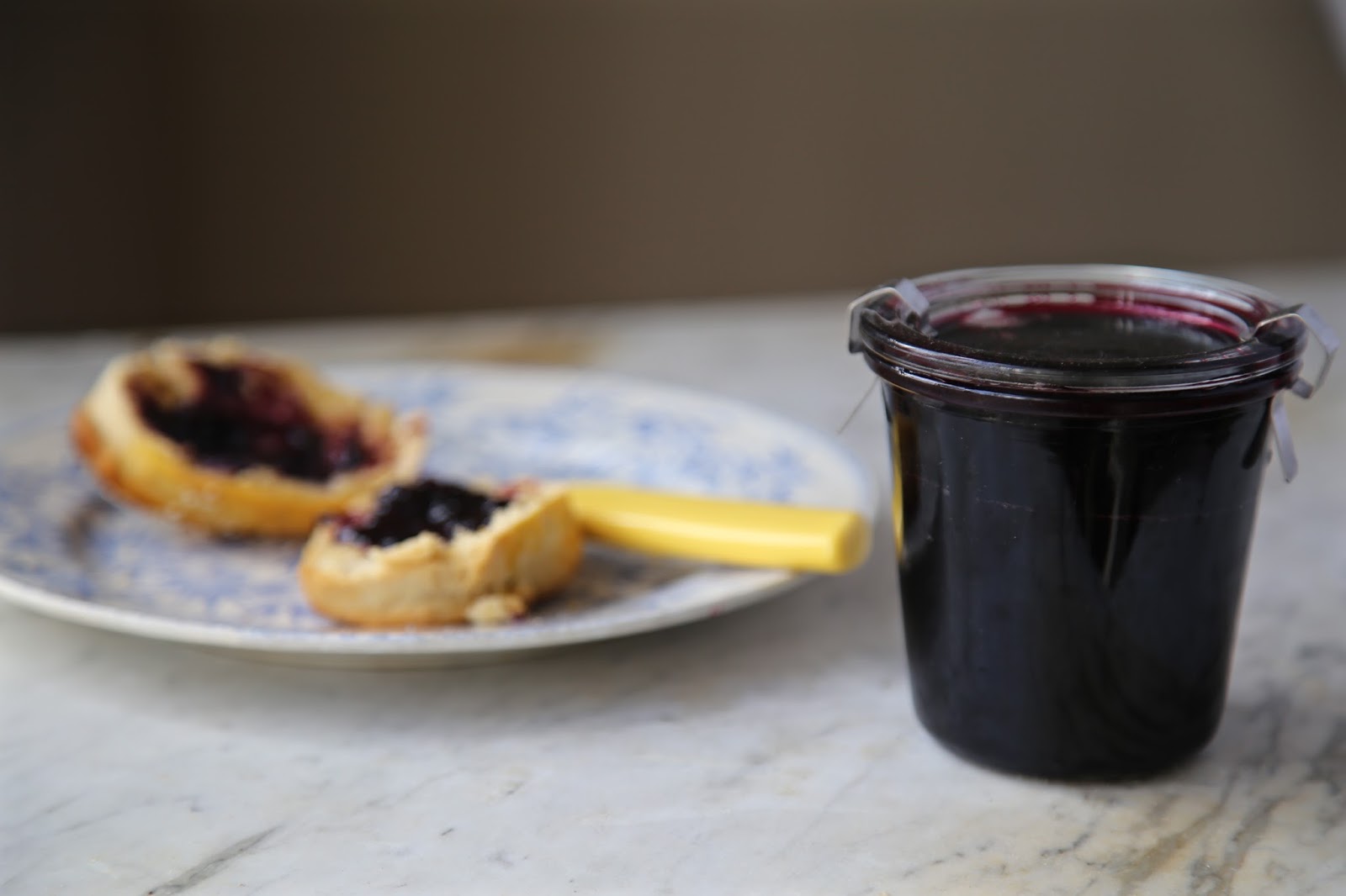 Grape jelly has an appealingly tart flavour. Even though I’m not a jam person, the glossy claret spread thick on warm bread with yellow butter for breakfast was pretty good.