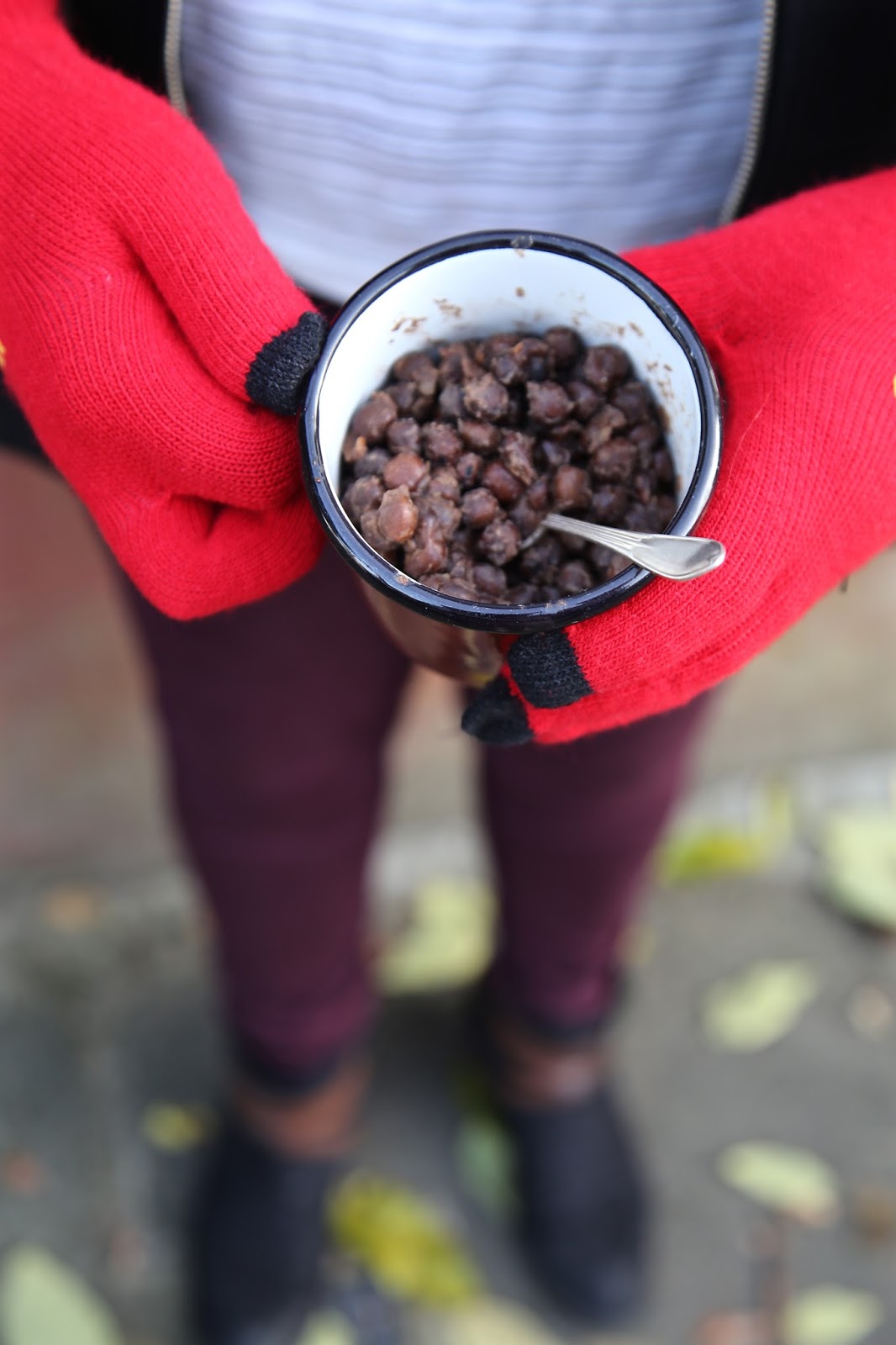 Parched peas are a traditional Guy Fawkes snack up in the north of England. They sell them in polystyrene cups from vans or in Preston, from brown paper bags. Rather like chips, they are doused with salt and malt vinegar.