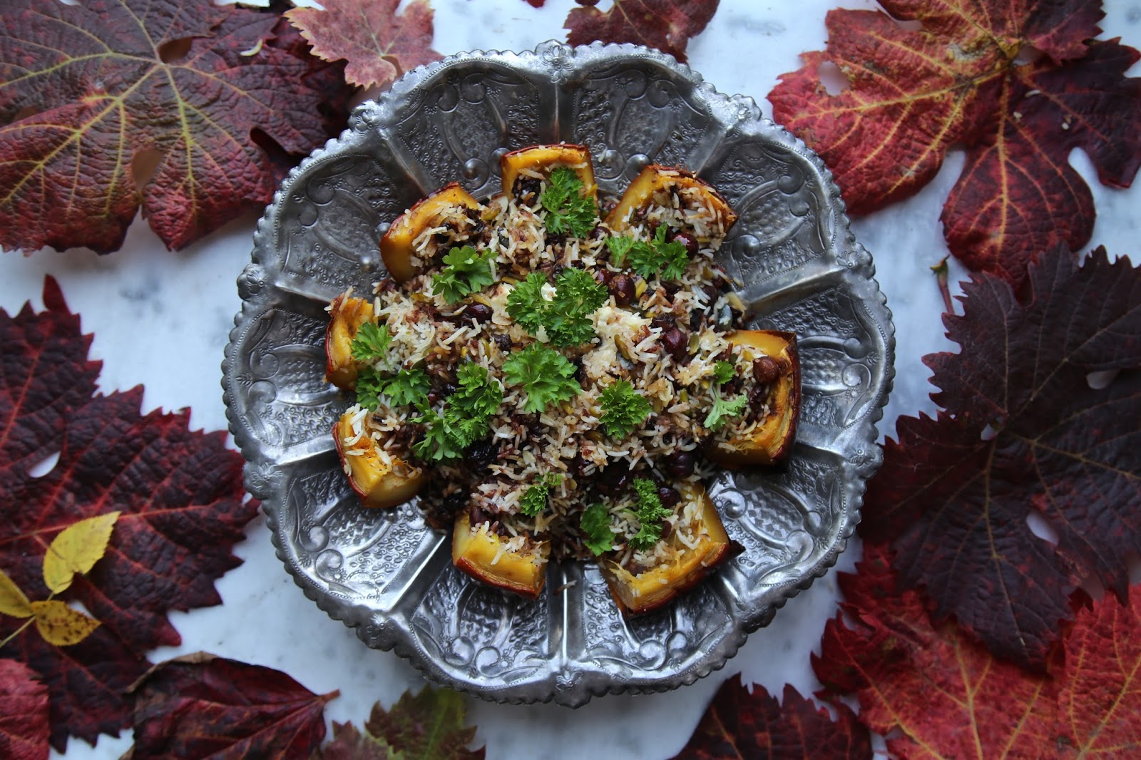This stunning stuffed pumpkin recipe is not difficult, but looks as if you have spent hours constructing something special. It’s inspired by Armenian cuisine.