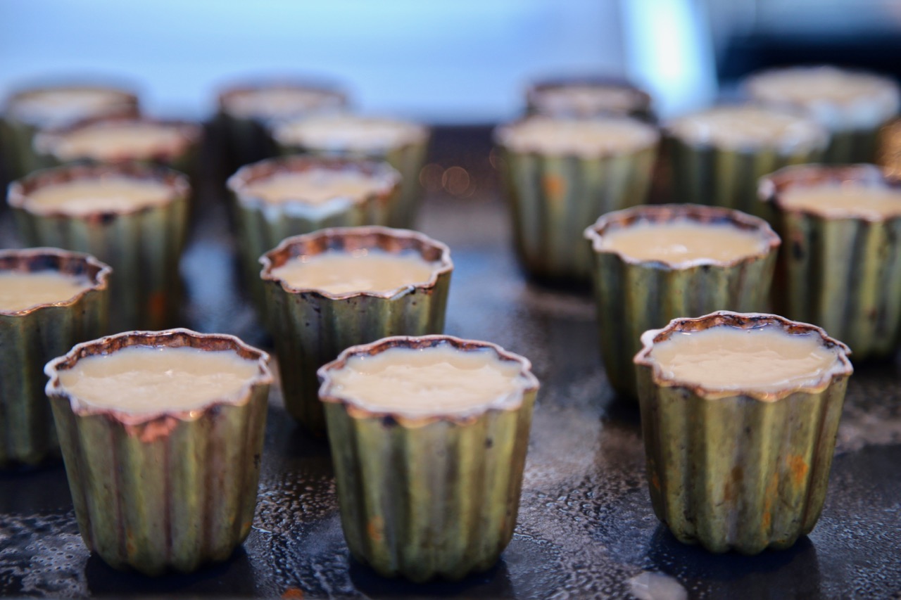 Moulds: go copper or go home. Copper is frighteningly expensive, but it produces the most ‘croustillant’ canelés. You can also buy rubber moulds in the shape, though it’s not the same. I bought one for 22 euros. Yes, just one, as that was all I could afford, at a local kitchenware shop. You might as well buy them on the internet because the exchange rate is so bad for us right now.
