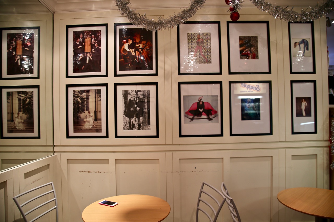 At the moment there are only two tables off to the side, although there is a wall of work by famous photographers. Mostly people eat at their desk.